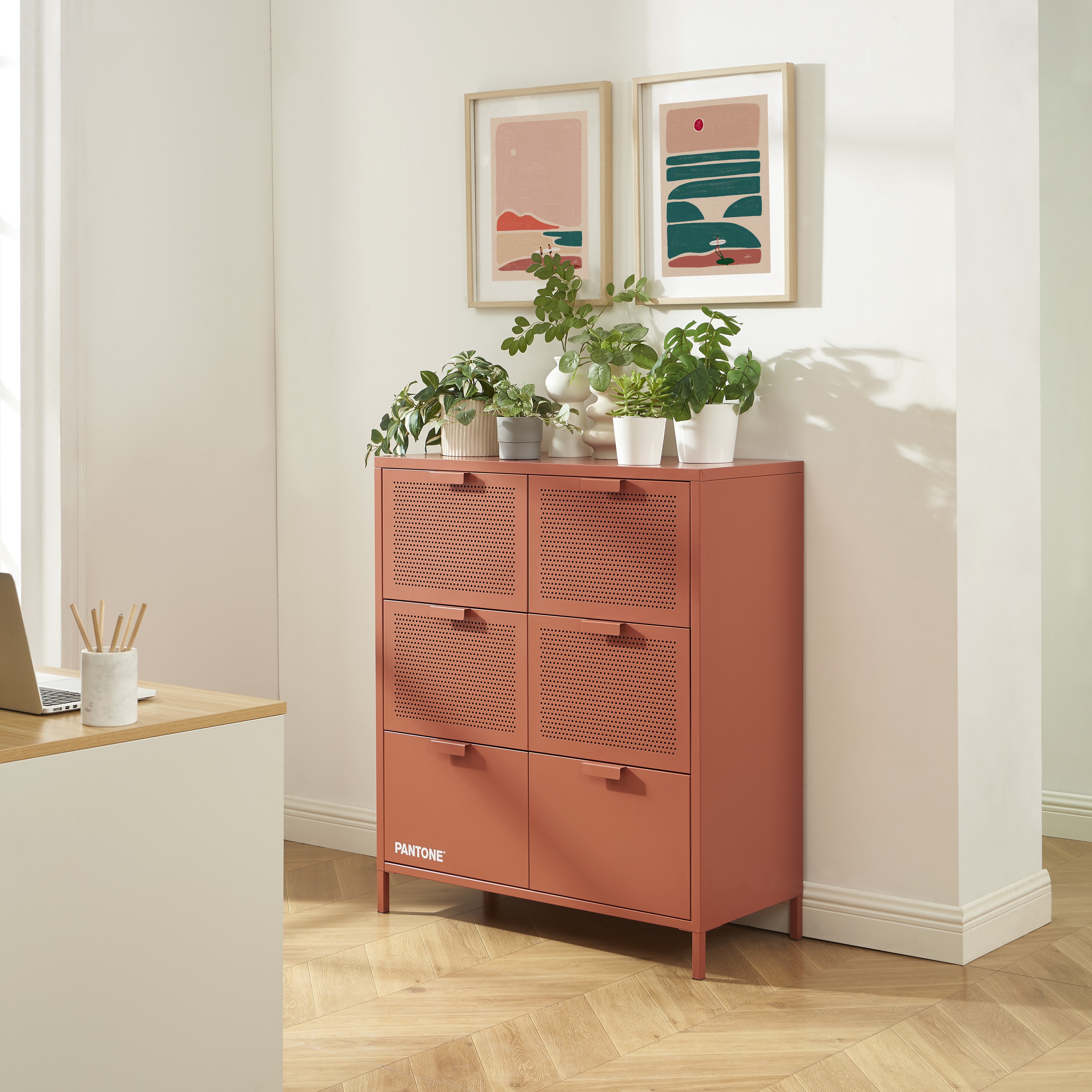 Commode PANTONE 6 tiroirs métal terracotta 90cm