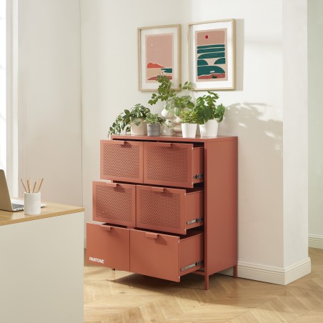 Commode PANTONE 6 tiroirs métal terracotta 90cm