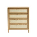 Commode HAIDA 4 tiroirs effet chêne et rotin 80cm