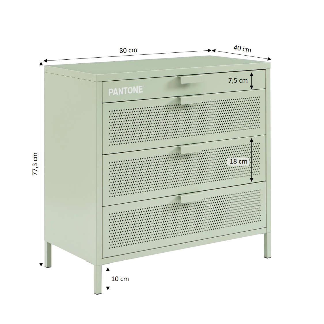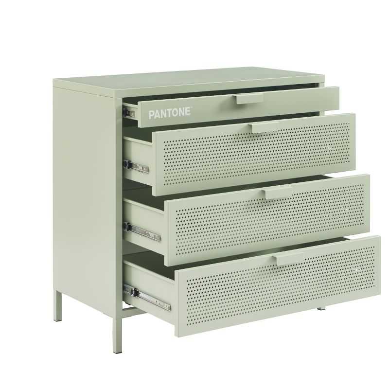 Commode PANTONE métal vert amande 4 tiroirs 40 cm