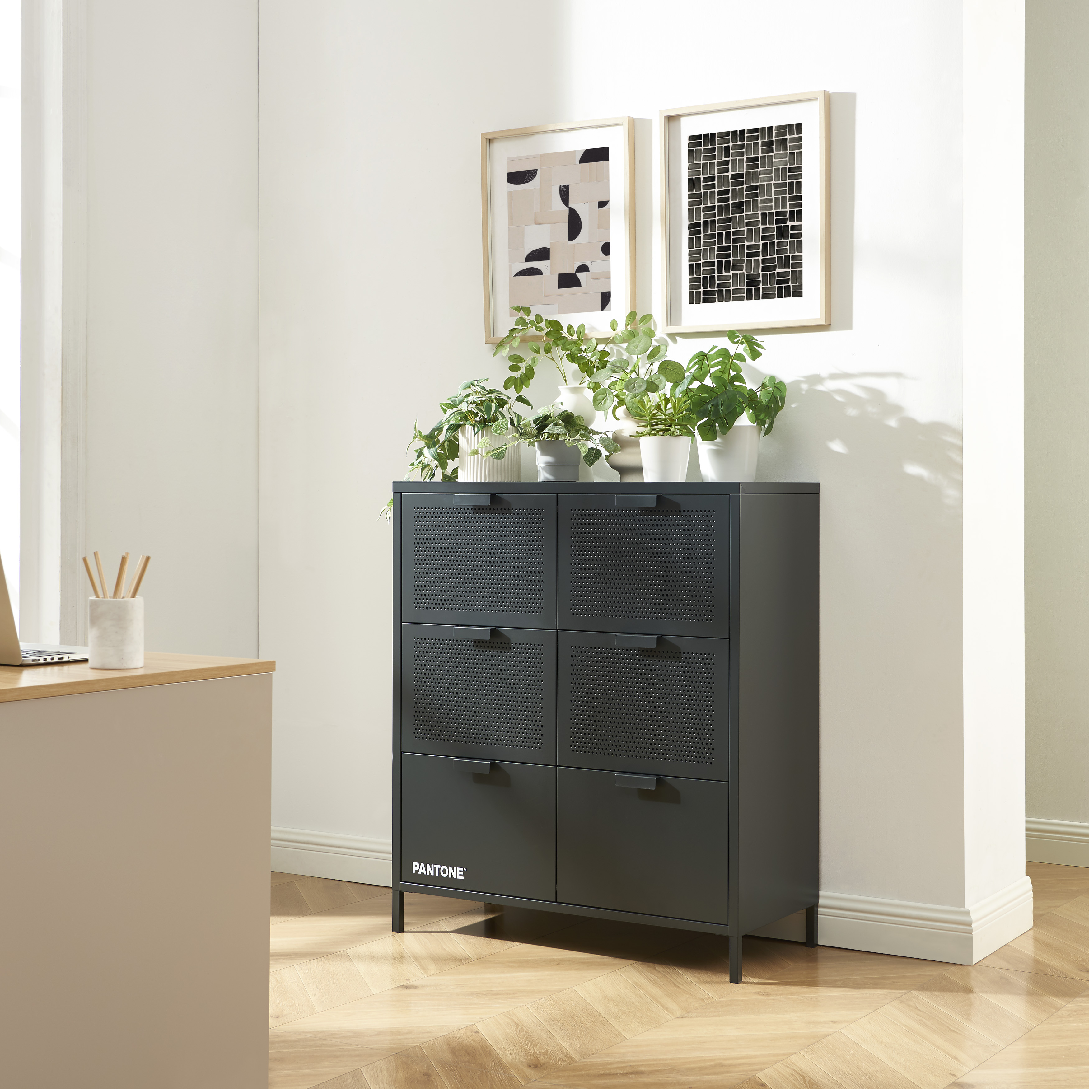 Commode PANTONE métal gris anthracite 6 tiroirs 90cm