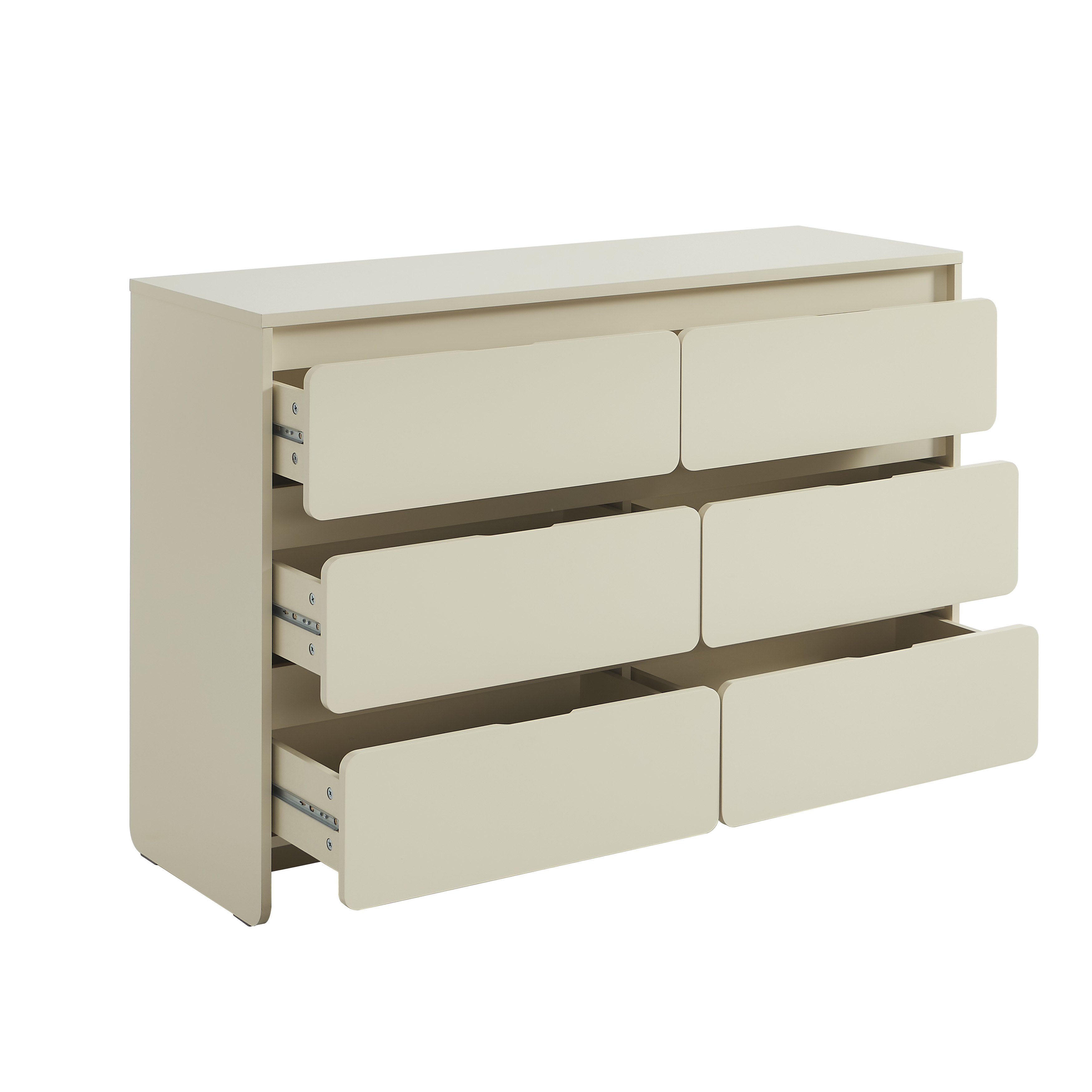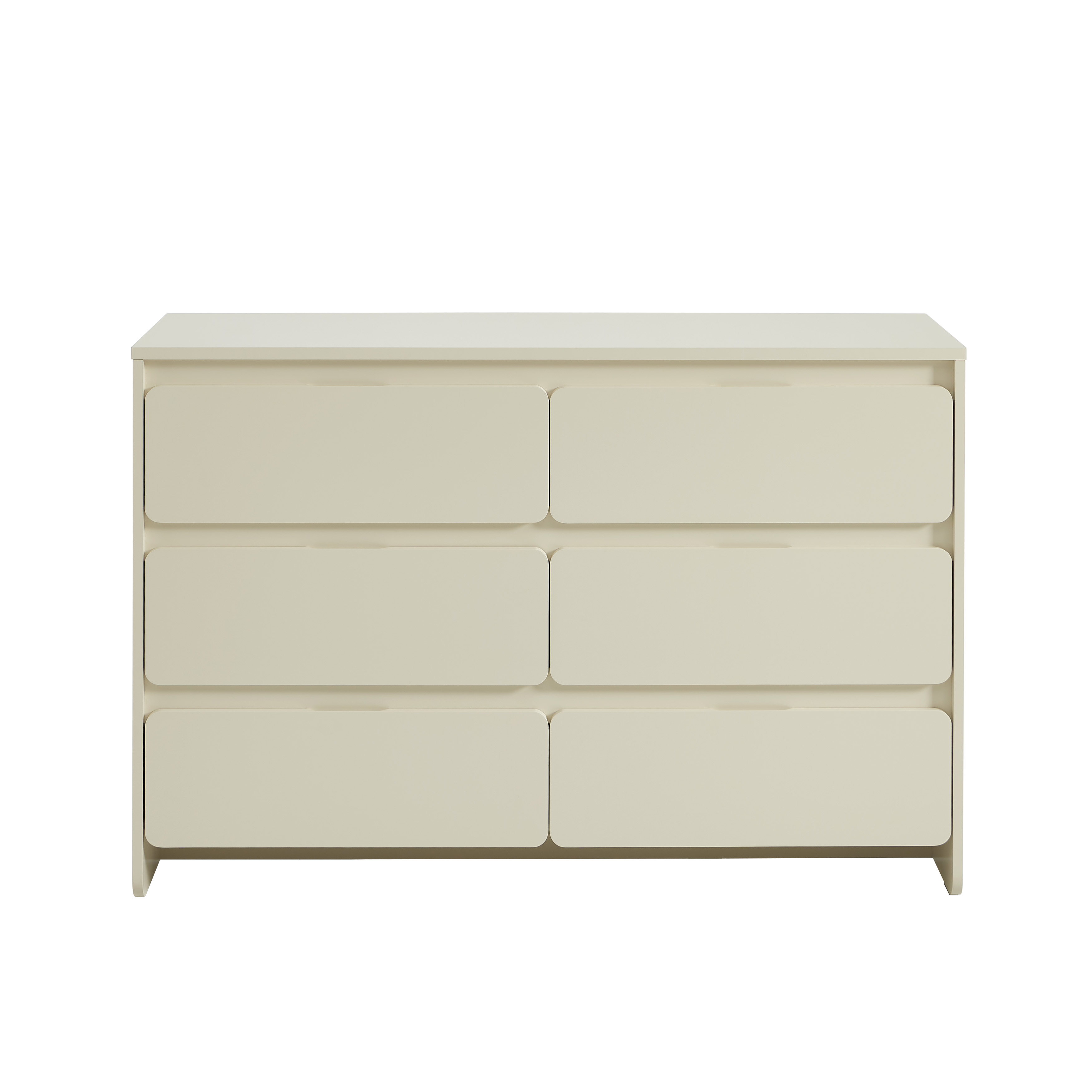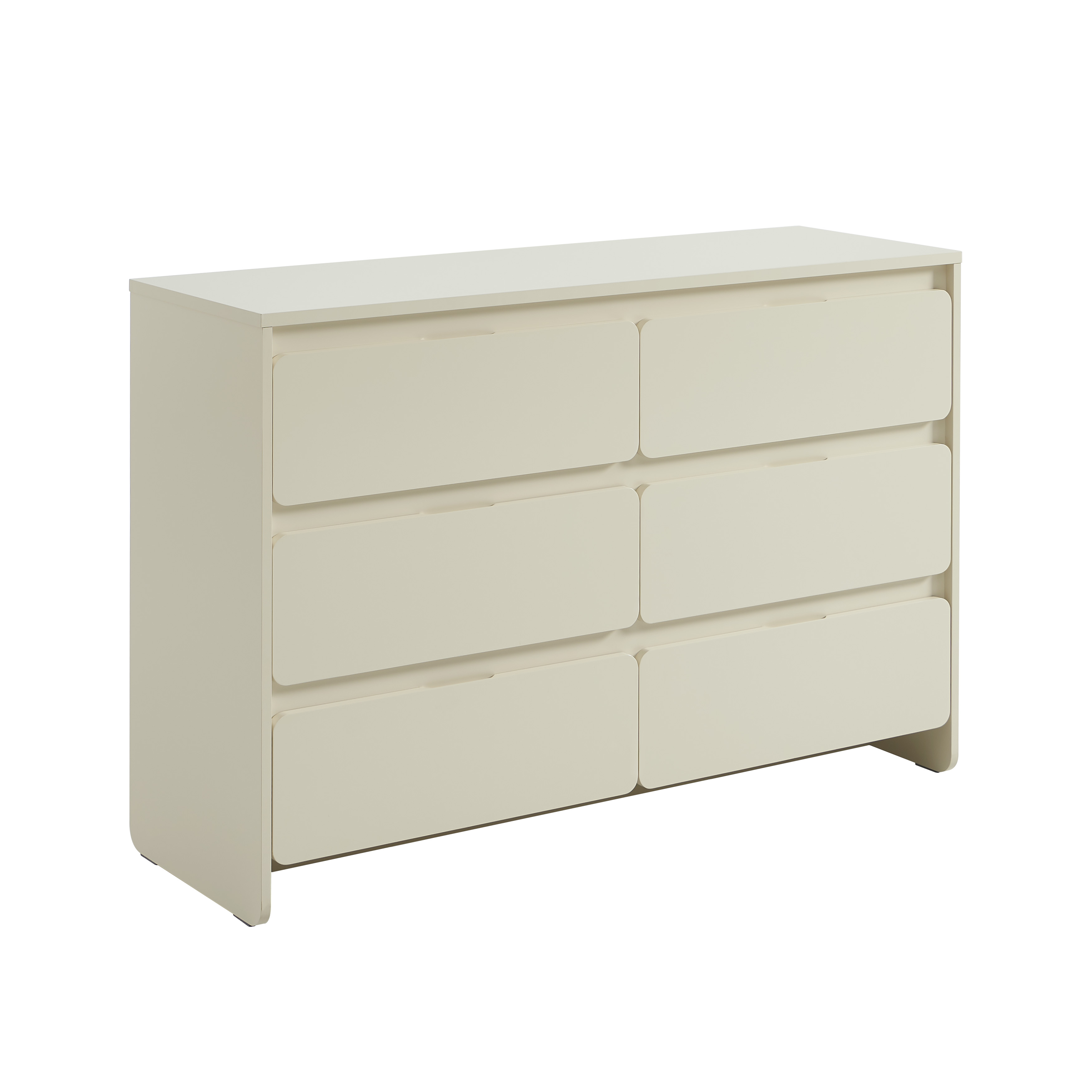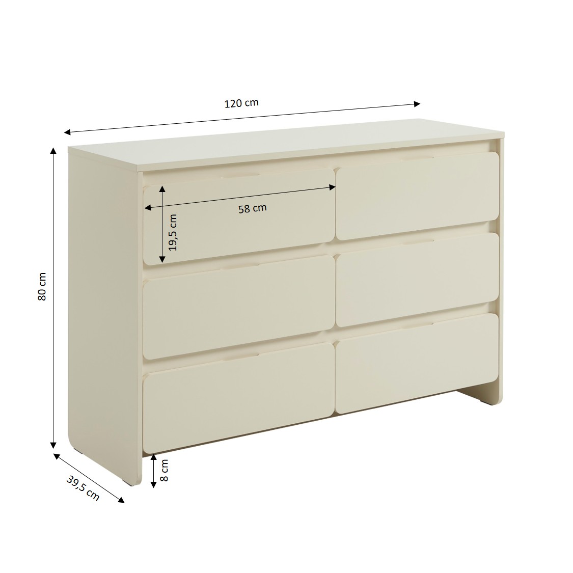 La commode AKKA 6 tiroirs 120 cm séduit par ses lignes sobres et sa finition laquée mate, qui apporteront une touche contemporaine à votre intérieur. Son format de 120 cm de largeur en fait un meuble parfaitement adapté à une chambre, un dressing ou même un séjour.