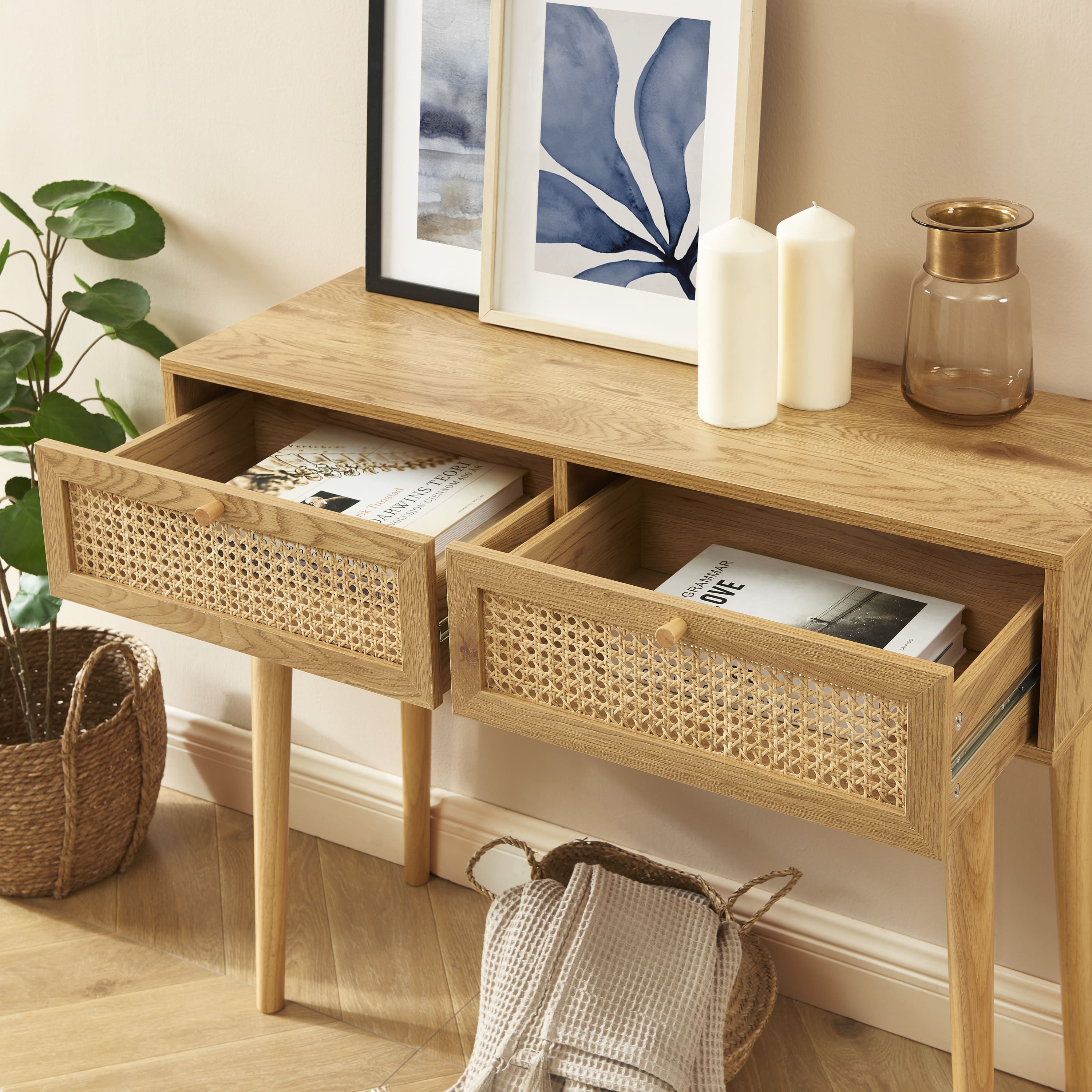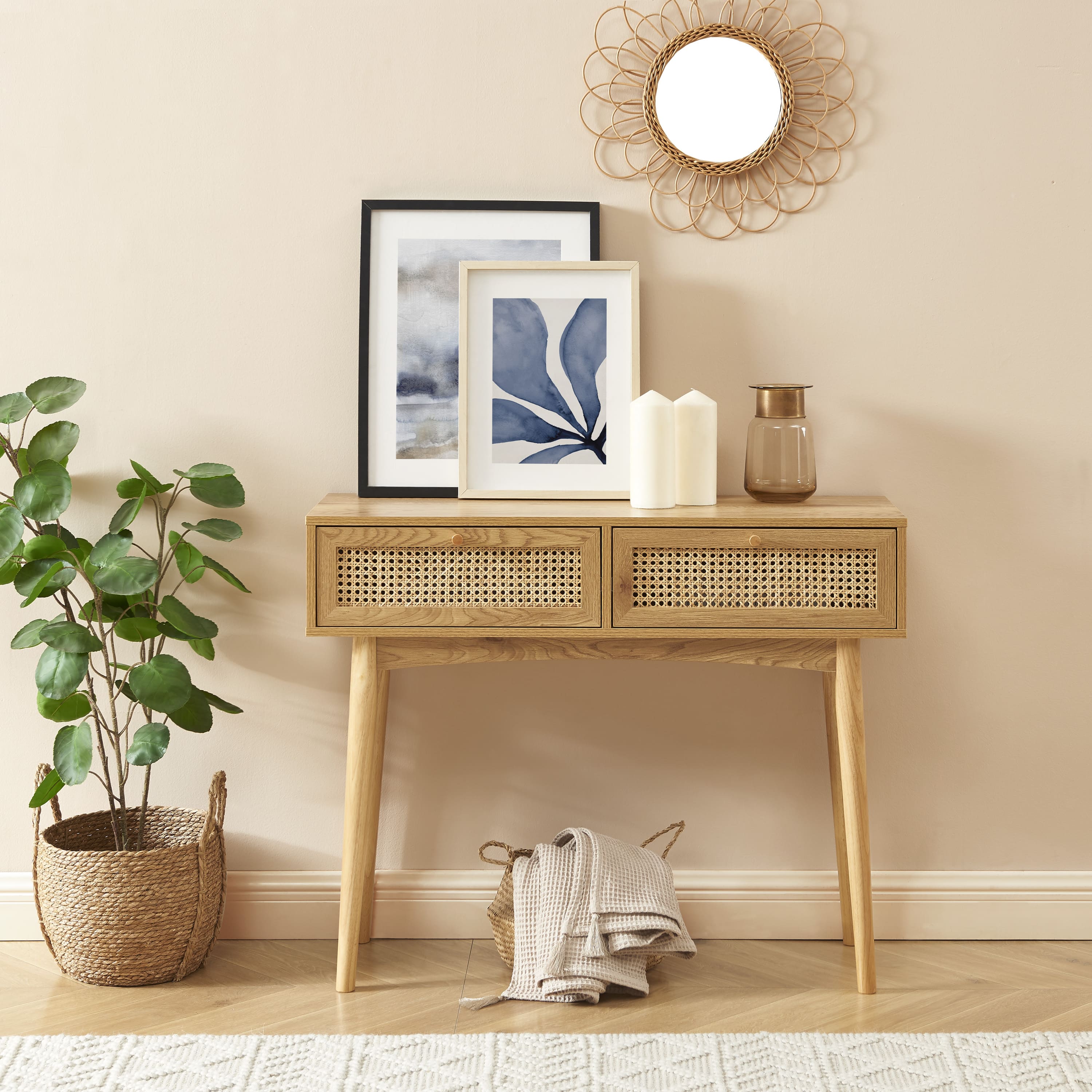 Console INES effet chêne et cannage rotin 2 tiroirs