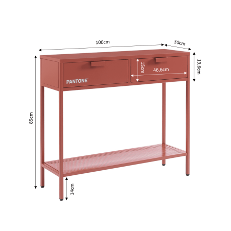Pour finir, la console en métal PANTONE vous offre de nombreux espaces de rangement grâce à ses 2 tiroirs.