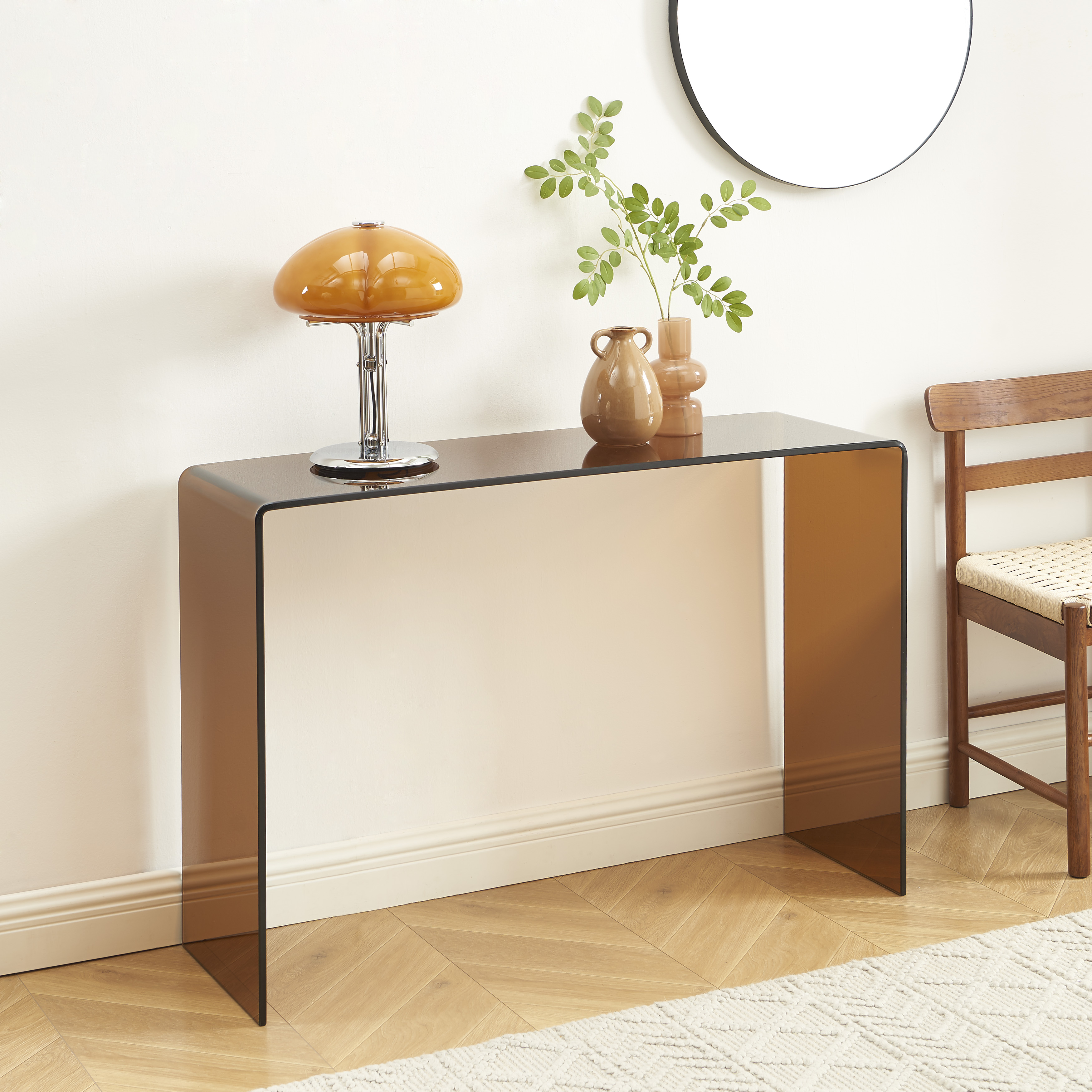 Le verre trempé, d'épaisseur 12mm, confère à la console robustesse et résistance aux chocs et aux rayures tout en ajoutant une touche de légèreté visuelle à votre intérieur. Les angles arrondis apportent une fluidité à l'ensemble, adoucissant les contours pour créer une pièce qui s'intègre dans divers décors, du moderne au contemporain.
