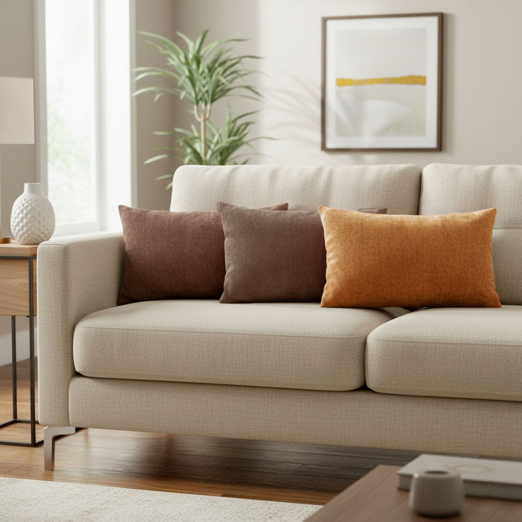 Le lot de 3 coussins MOO combine confort et style naturel pour sublimer votre espace de vie. Confectionnés en chenille unie 100 % polyester, ces coussins offrent un toucher doux et chaleureux. Leur dessous en velours apporte une touche supplémentaire de confort et d’élégance. Avec leurs dimensions de 50x30 cm, ils conviennent aussi bien pour habiller un canapé que pour compléter une parure de lit. Pratiques, ils disposent d’une housse amovible avec fermeture éclair pour un entretien facile. Déclinés en trois teintes assorties (orange, taupe et marron), les coussins MOO s’intègrent harmonieusement dans tout type de décoration, qu’elle soit contemporaine, naturelle ou classique.