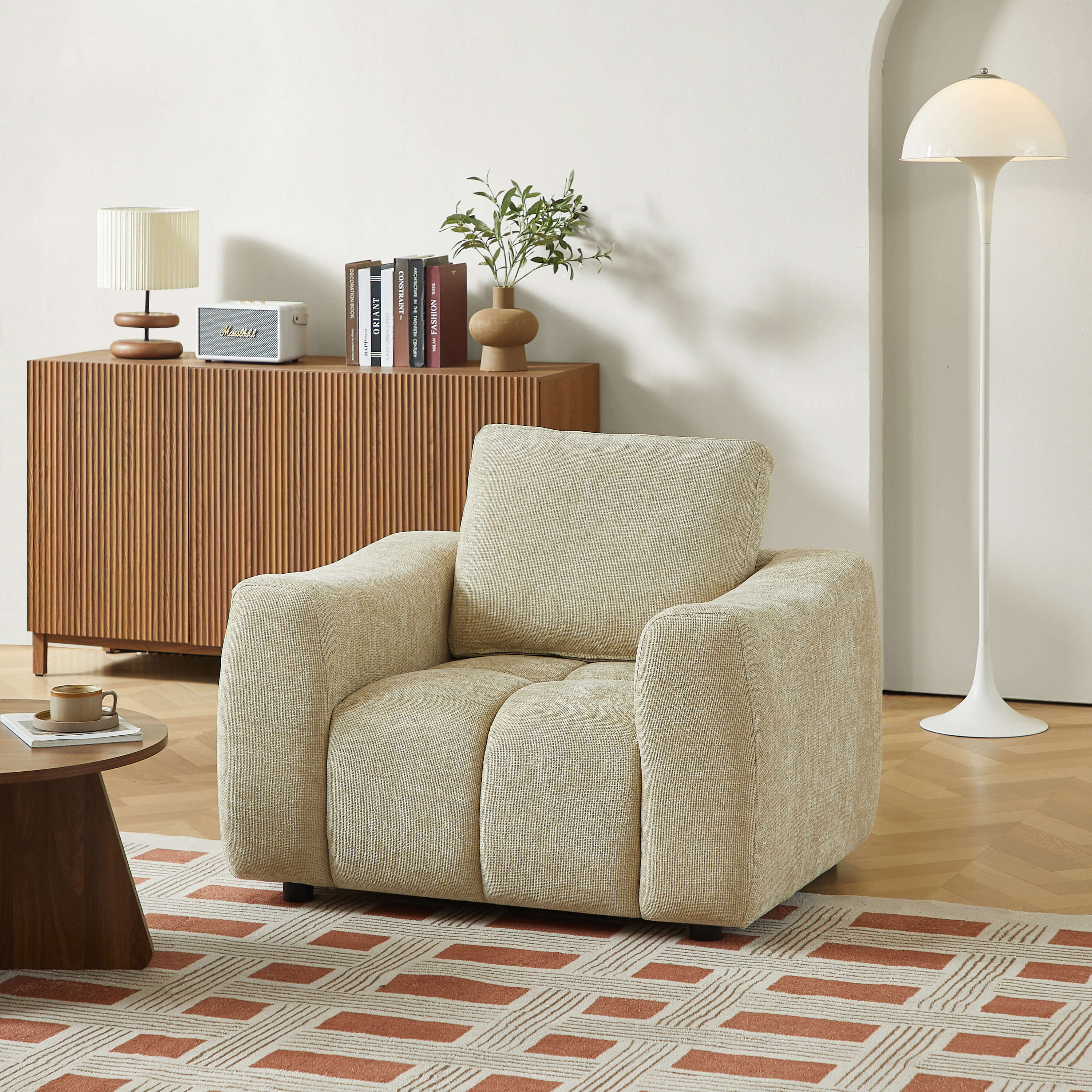 Pensé pour votre bien-être, l’ensemble KEREA dispose d’assises matelassées offrant un confort équilibré et un soutien optimal, que ce soit pour se détendre seul, lire ou partager des moments conviviaux. Les largeurs et profondeurs généreuses des assises garantissent un confort durable pour le canapé comme pour le fauteuil.