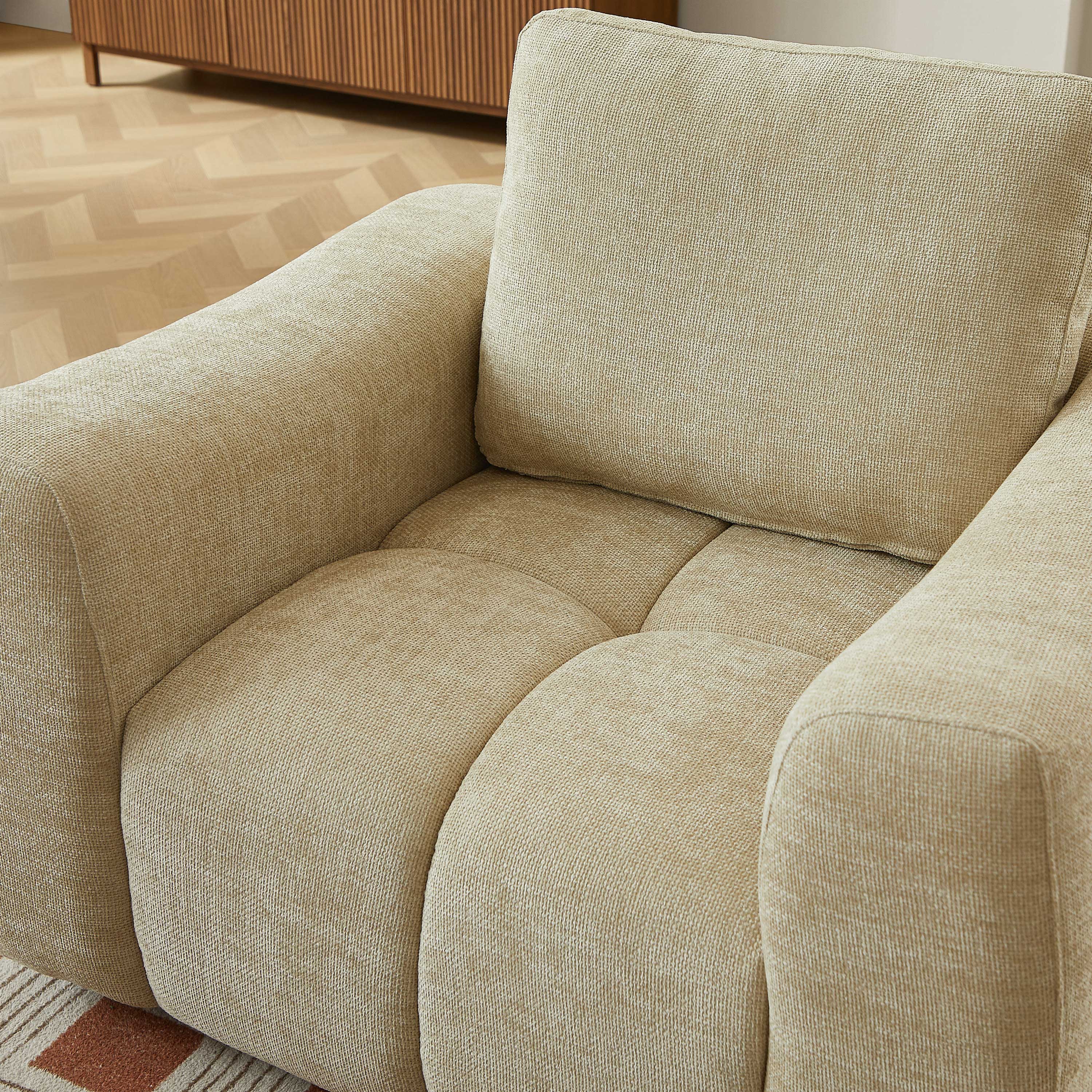 moelleuxL’ensemble KEREA en tissu chenille, composé d’un canapé droit fixe 3 places et d’un fauteuil 1 place, allie élégance et confort. Son revêtement doux, associé à des assises confortables, offre un espace de détente idéal, seul ou à plusieurs.