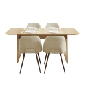Les chaises ELISABETH offrent une assise moelleuse grâce à leur rembourrage en mousse et leur dossier légèrement incurvé. Le tissu agréable au toucher et les pieds effet bois complètent le look naturel et élégant du set, pour des repas confortables en famille ou entre amis.
