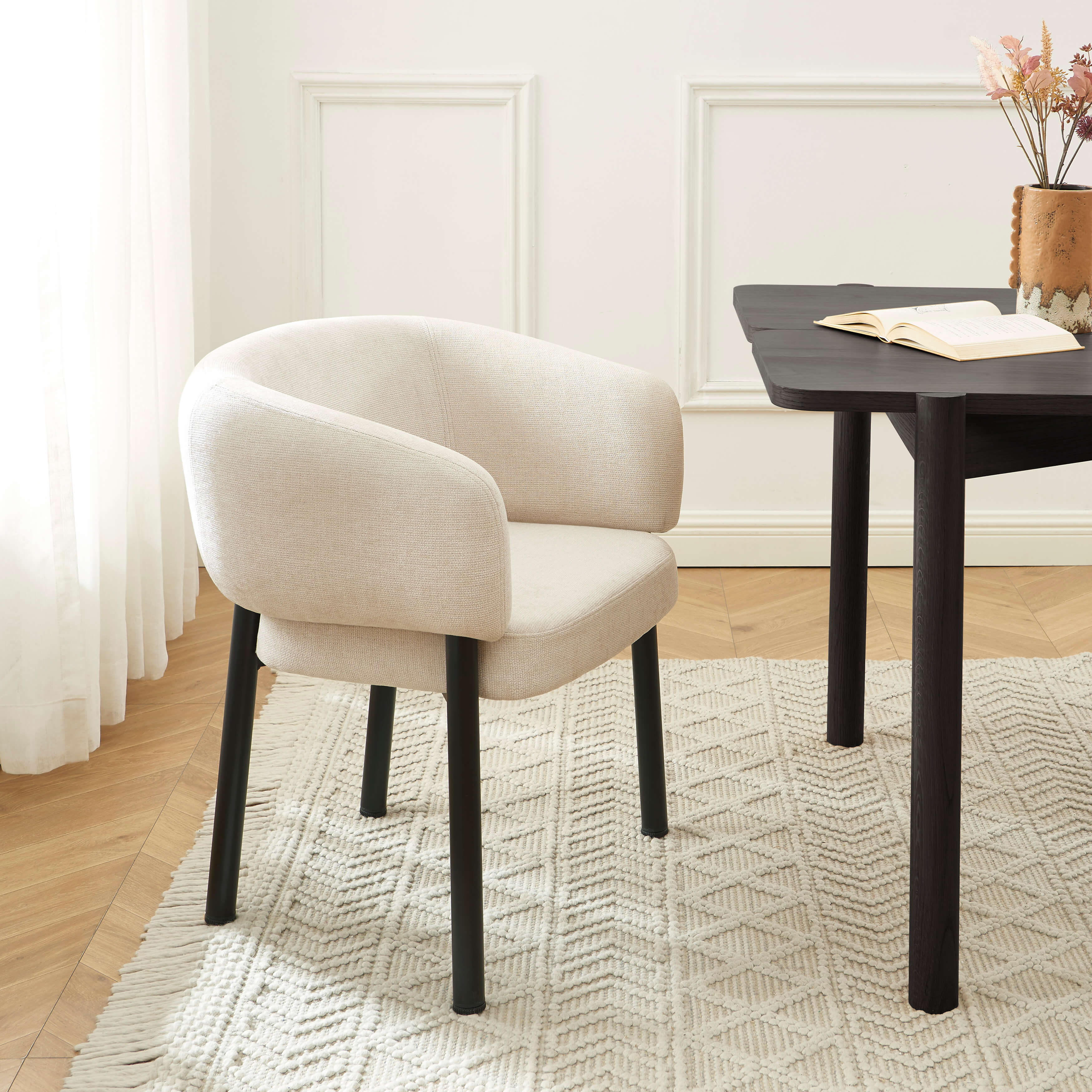 Fauteuil de table ABELIA velours blanc et pieds métal noir