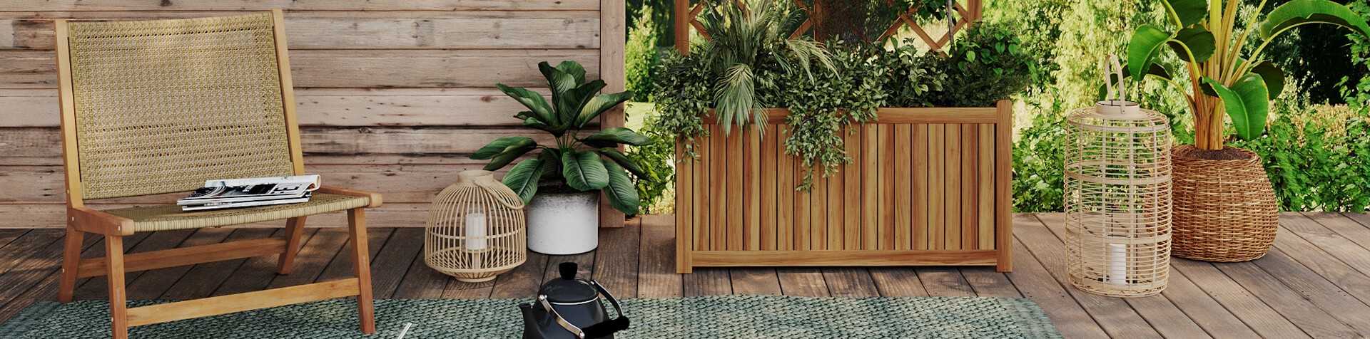 Par essence, un meuble d’extérieur se doit d’être robuste afin de résister dans le temps, face au soleil, à la pluie et aux intempéries. Cela tombe bien, le cannage est particulièrement résistant ! Il est donc tout à fait possible de l’utiliser en extérieur sur un balcon, une terrasse ou encore dans un jardin. De plus, le cannage étant une matière organique et naturelle, il se fondra dans le décor et apportera une touche cozy qu’on apprécie particulièrement. Ainsi, pour les espaces extérieurs, on aime mixer le cannage avec du bois ou du tissu, sur des ensembles repas, des fauteuils de jardin ou encore des bains de soleil.