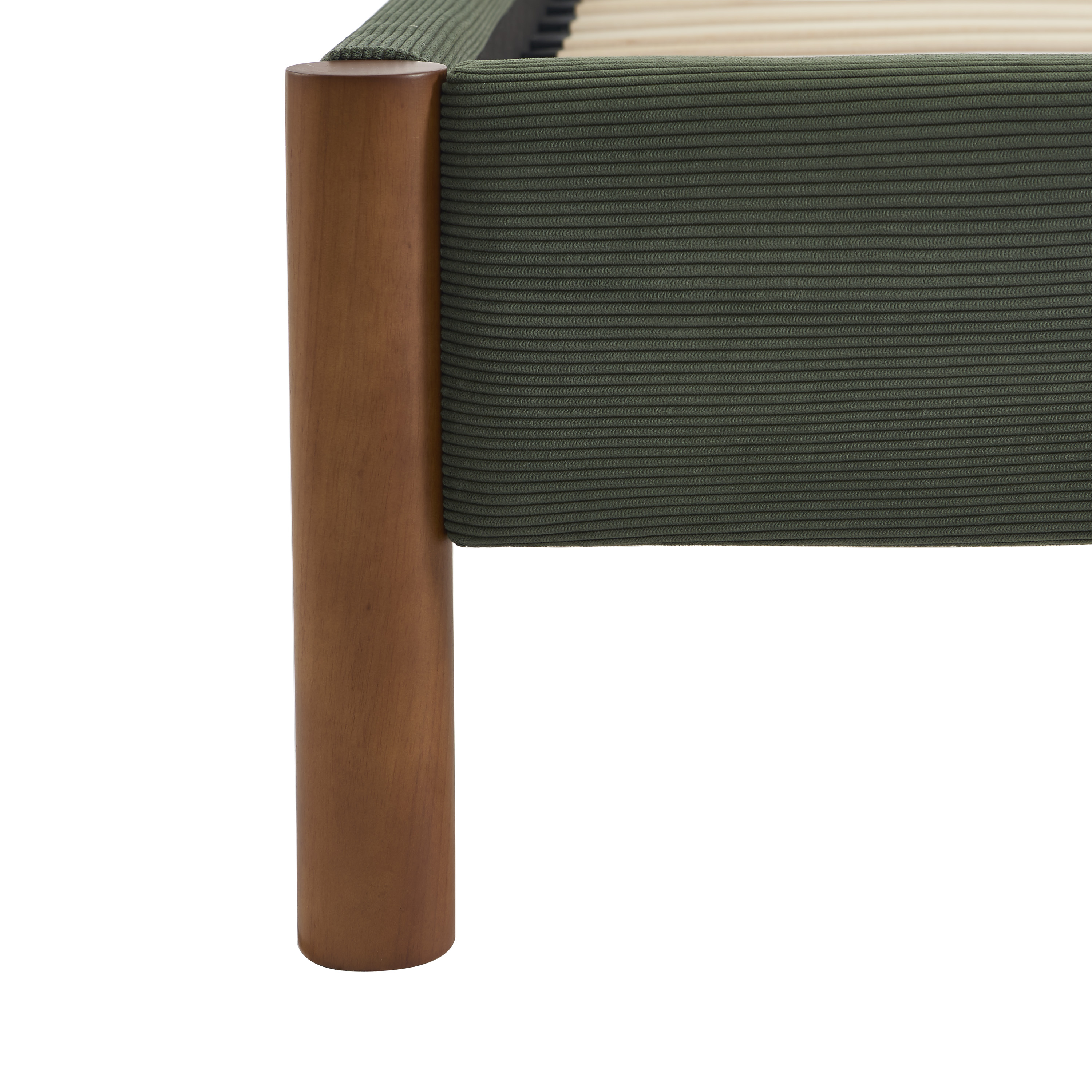 Lit BOWI velours côtelé kaki 140x190 sommier inclus