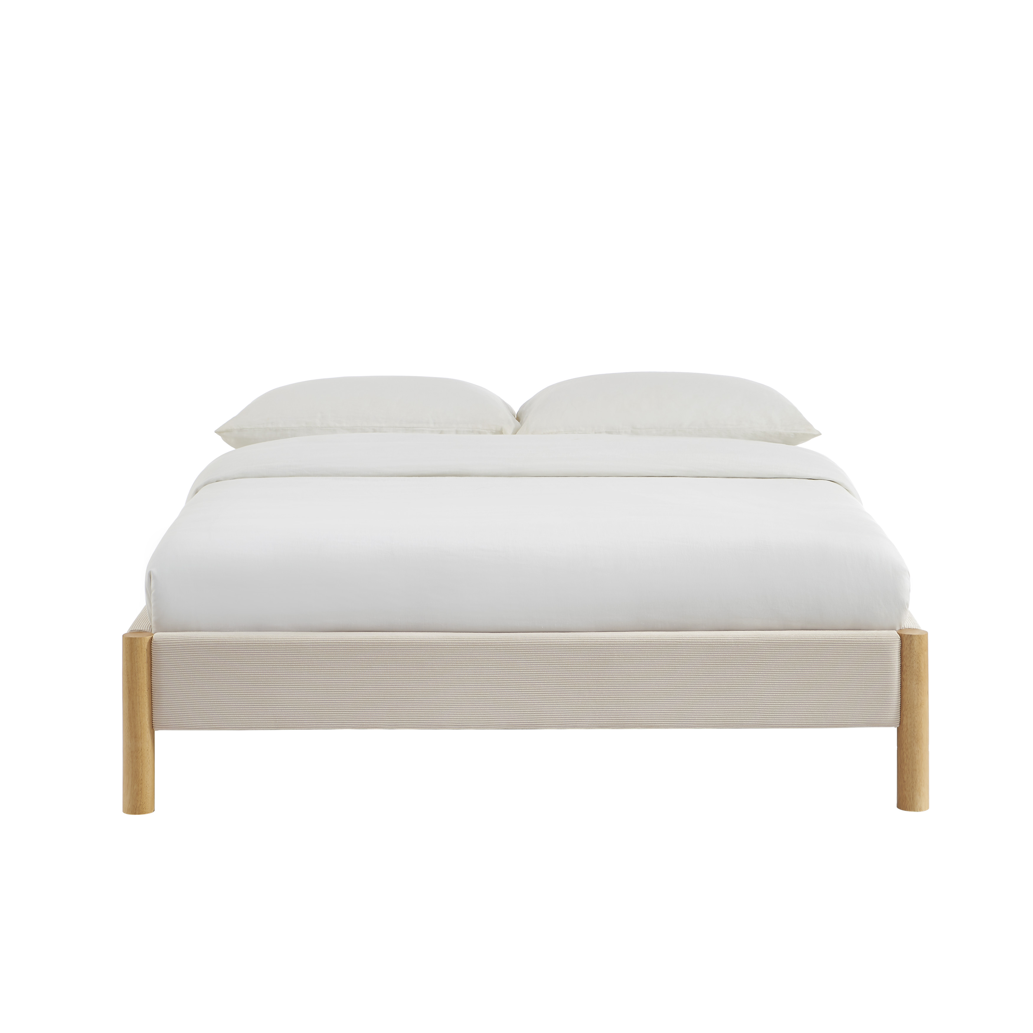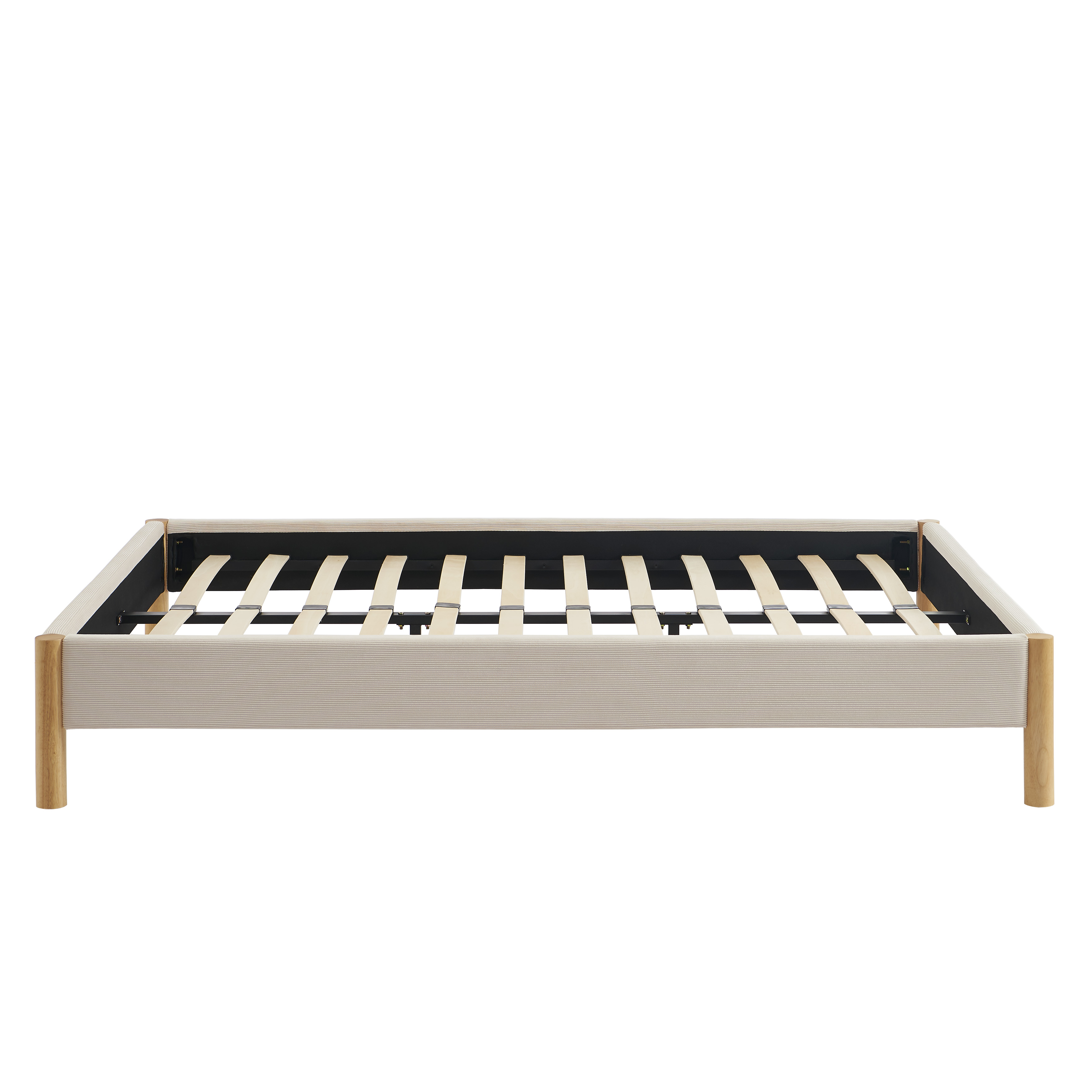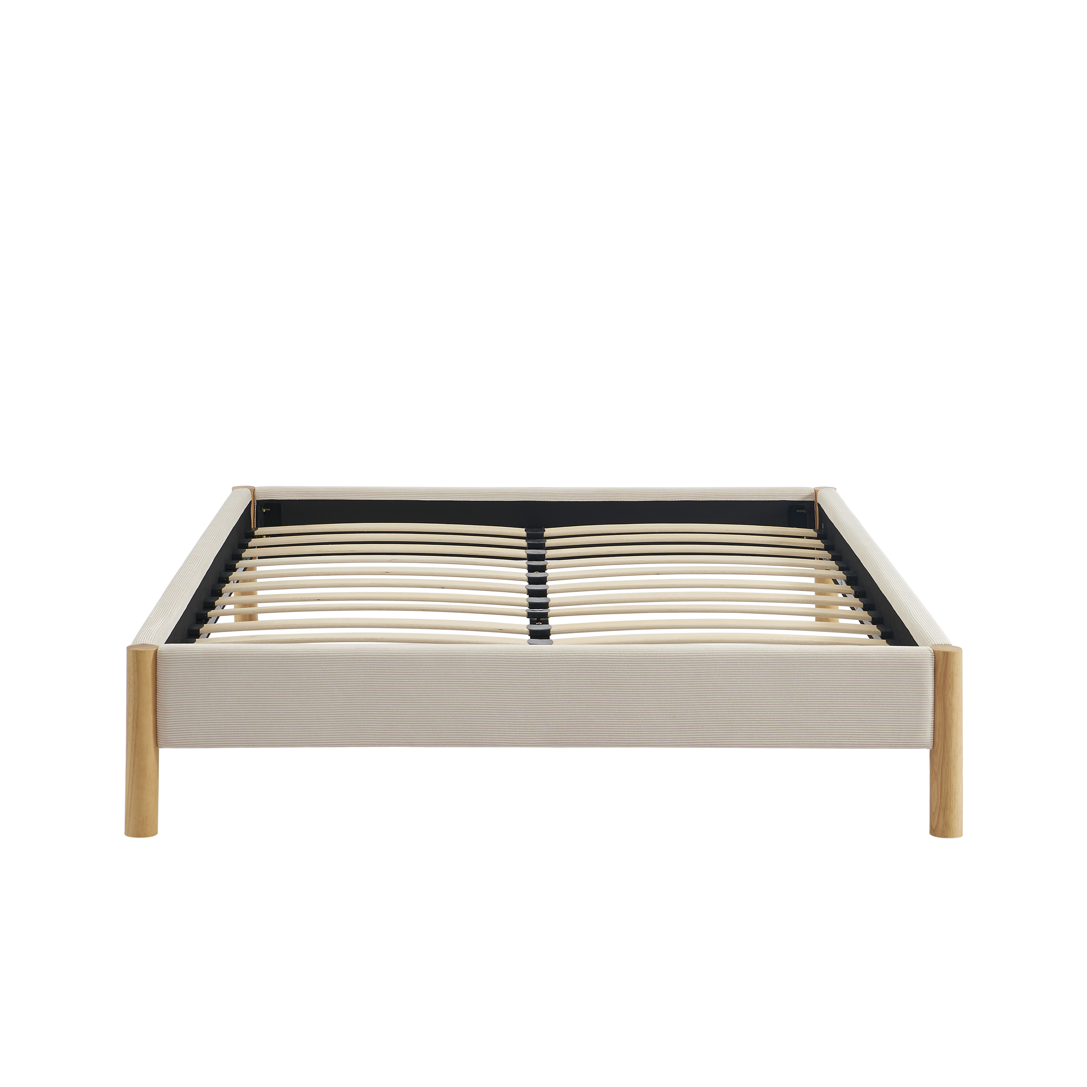 Avec son revêtement en velours côtelé moderne et ses pieds en hévéa massif, le lit BOWI apporte confort et élégance à votre chambre.