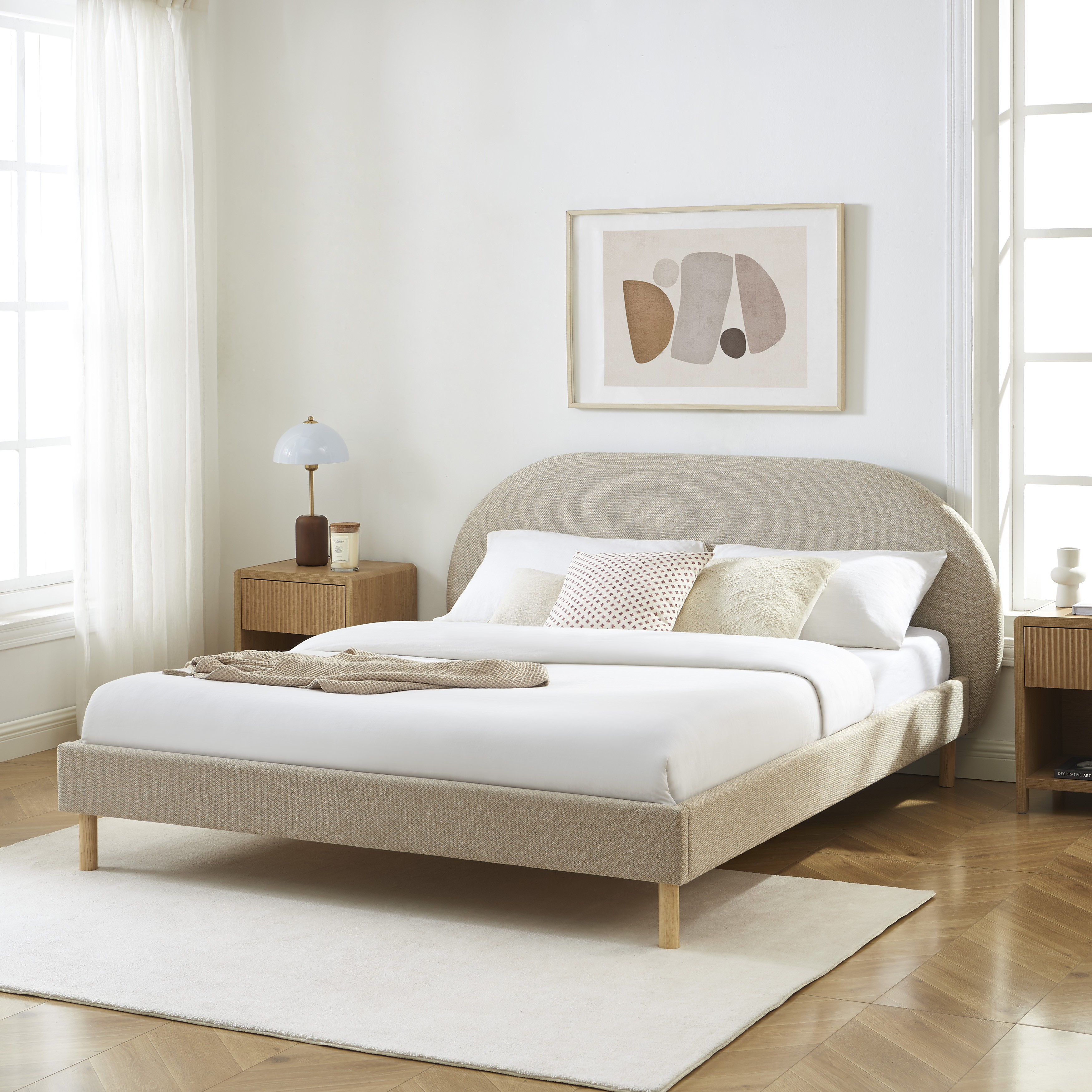 Le lit NEBULA séduit par son style sobre et moderne. Son revêtement en tissu grège s'intègre facilement dans toutes les ambiances : scandinave, contemporaine ou minimaliste. La tête de lit rembourrée et aux lignes douces apporte une touche cosy à votre chambre, parfaite pour vos moments de lecture ou de détente.