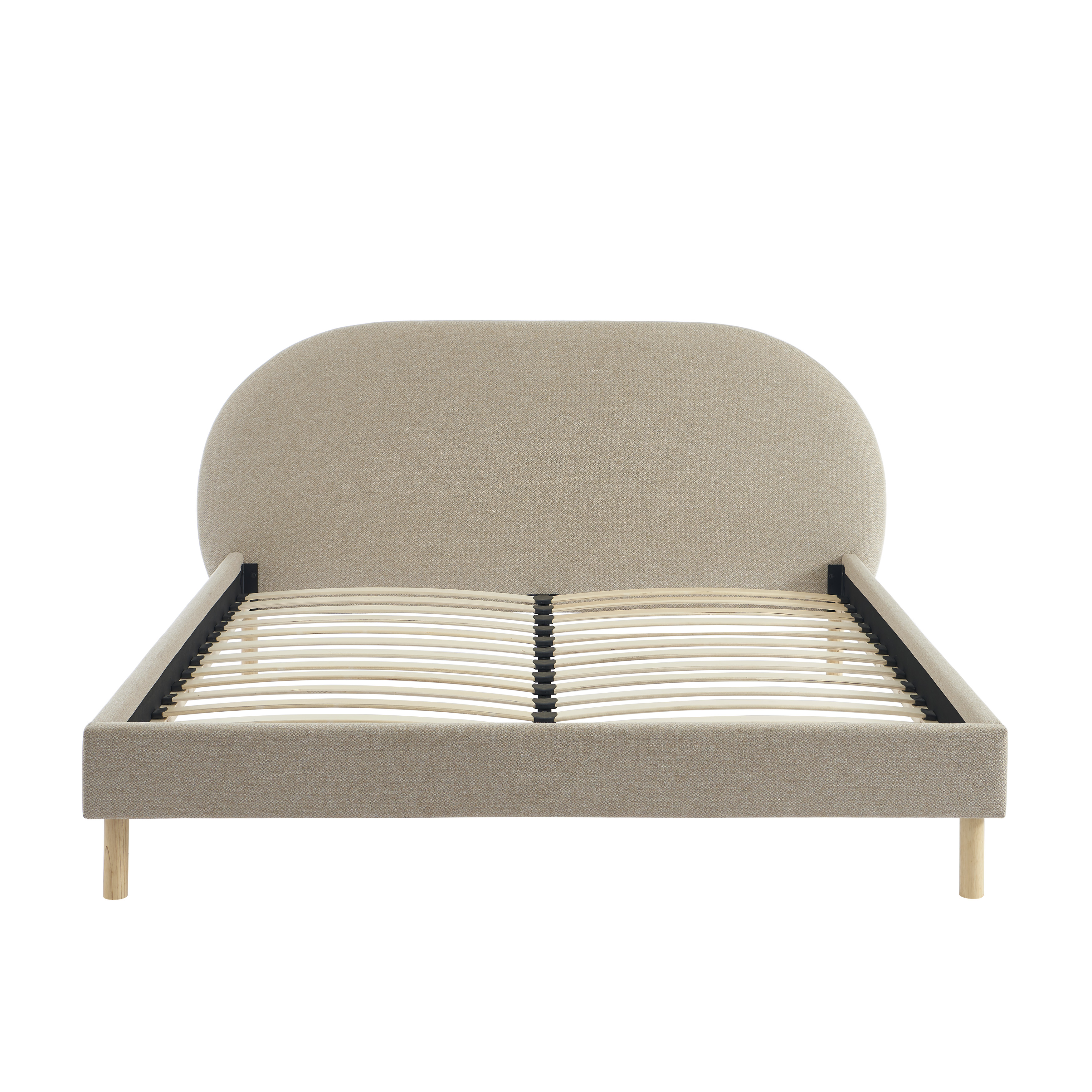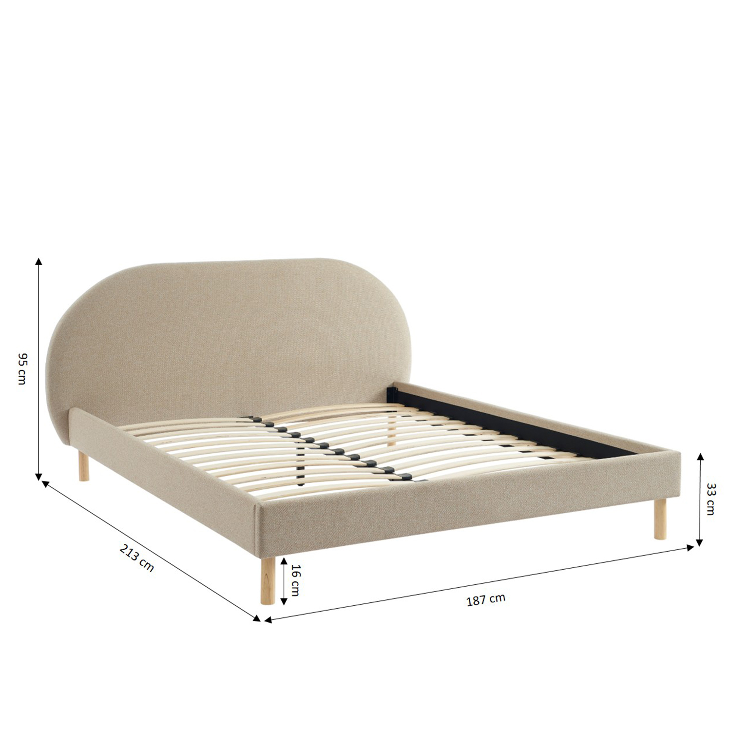 Ce lit double est livré avec un sommier à 28 lattes en bois, garantissant une bonne aération du matelas et un soutien équilibré. Sa structure en contreplaqué et MDF assure une excellente stabilité, capable de supporter jusqu'à 220 kg. Les pieds en bois d'hévéa massif renforcent la solidité de l'ensemble, tout en apportant une finition naturelle et chaleureuse.