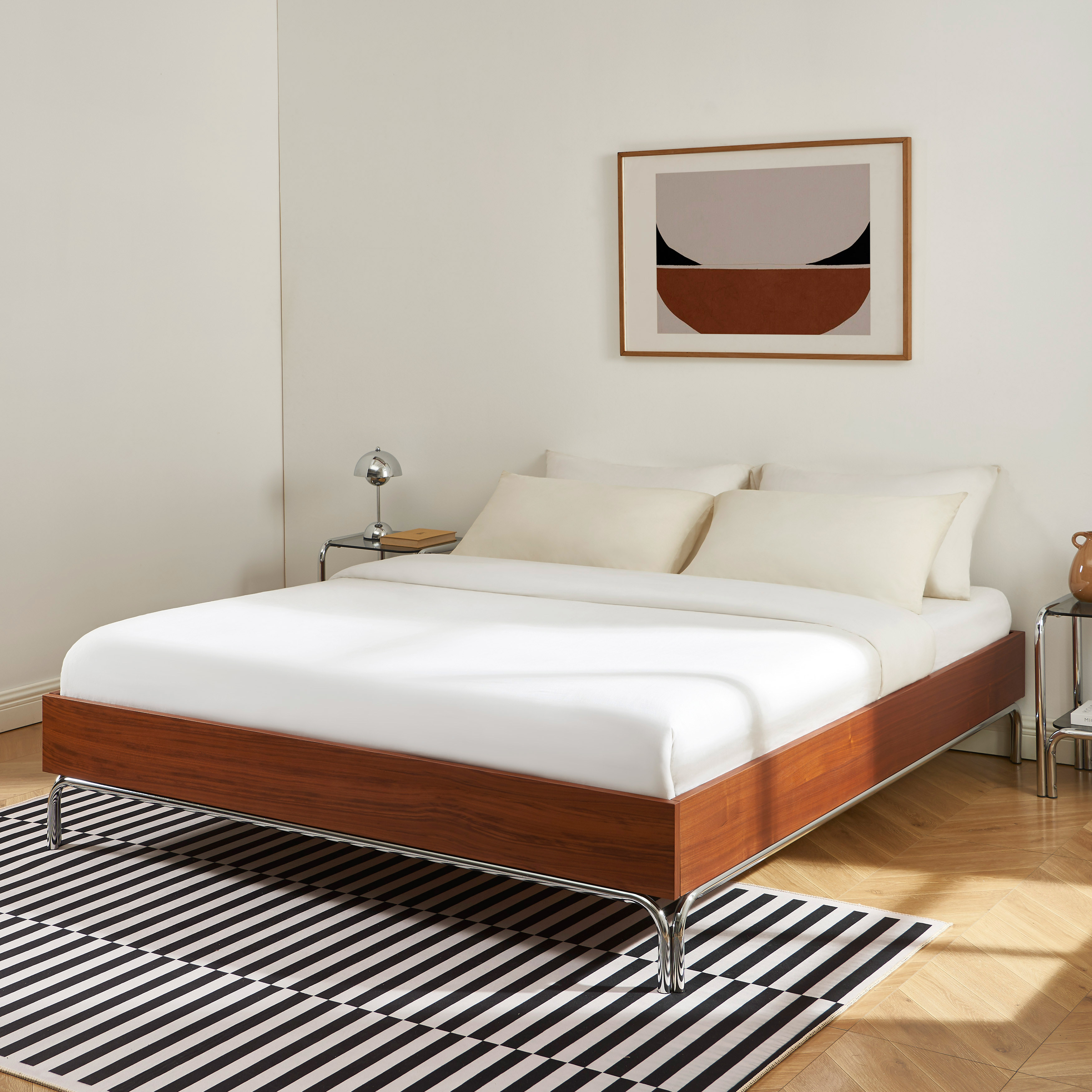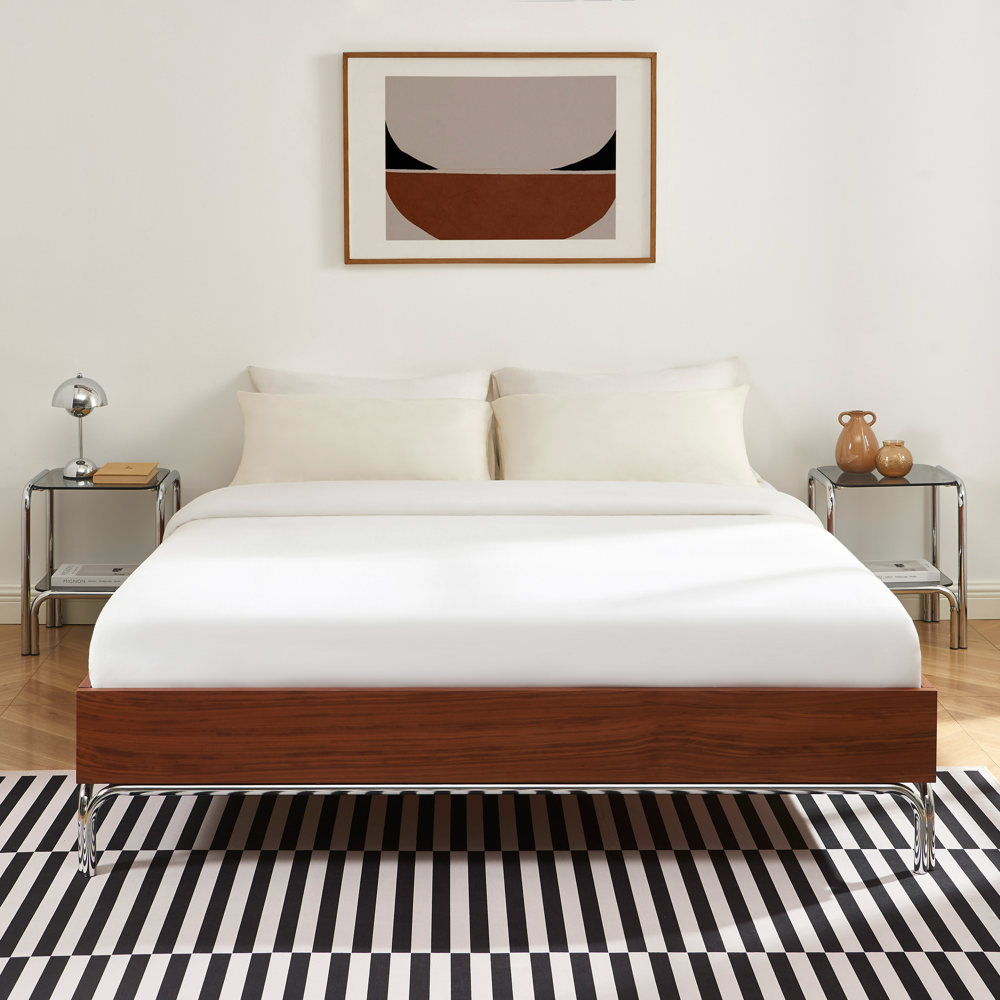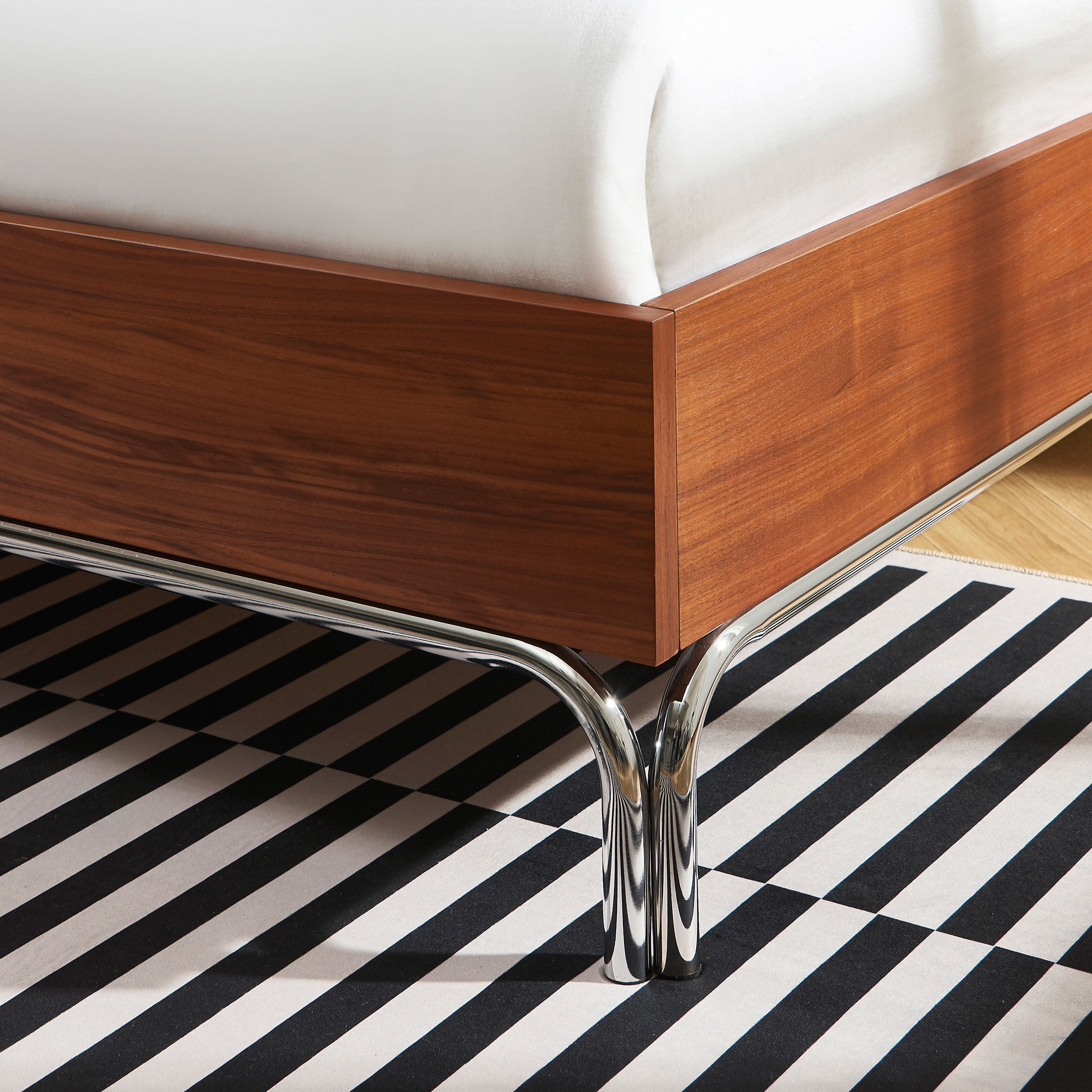 Lit MAGGY 160x200 placage noyer et pieds métal chromé sommier inclus