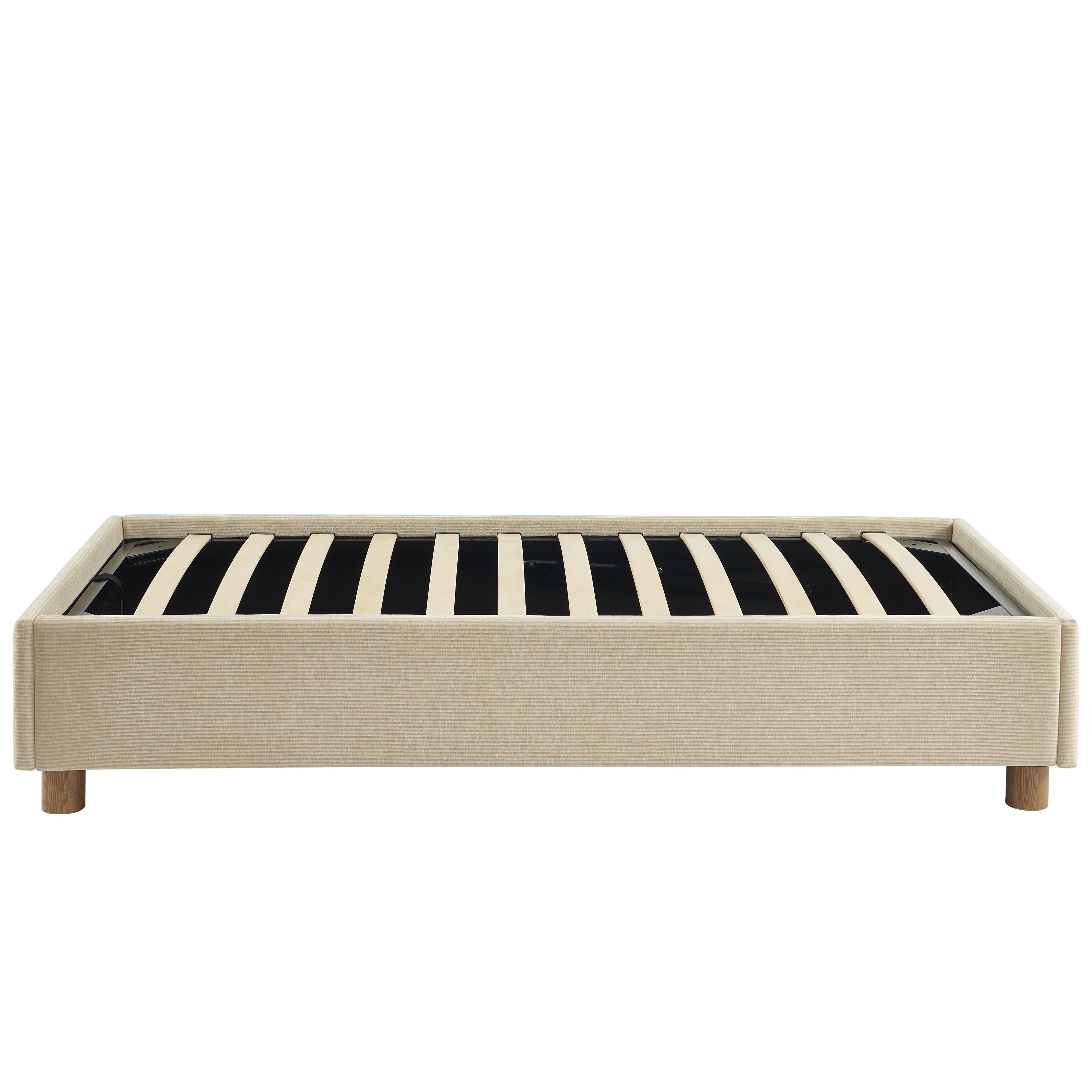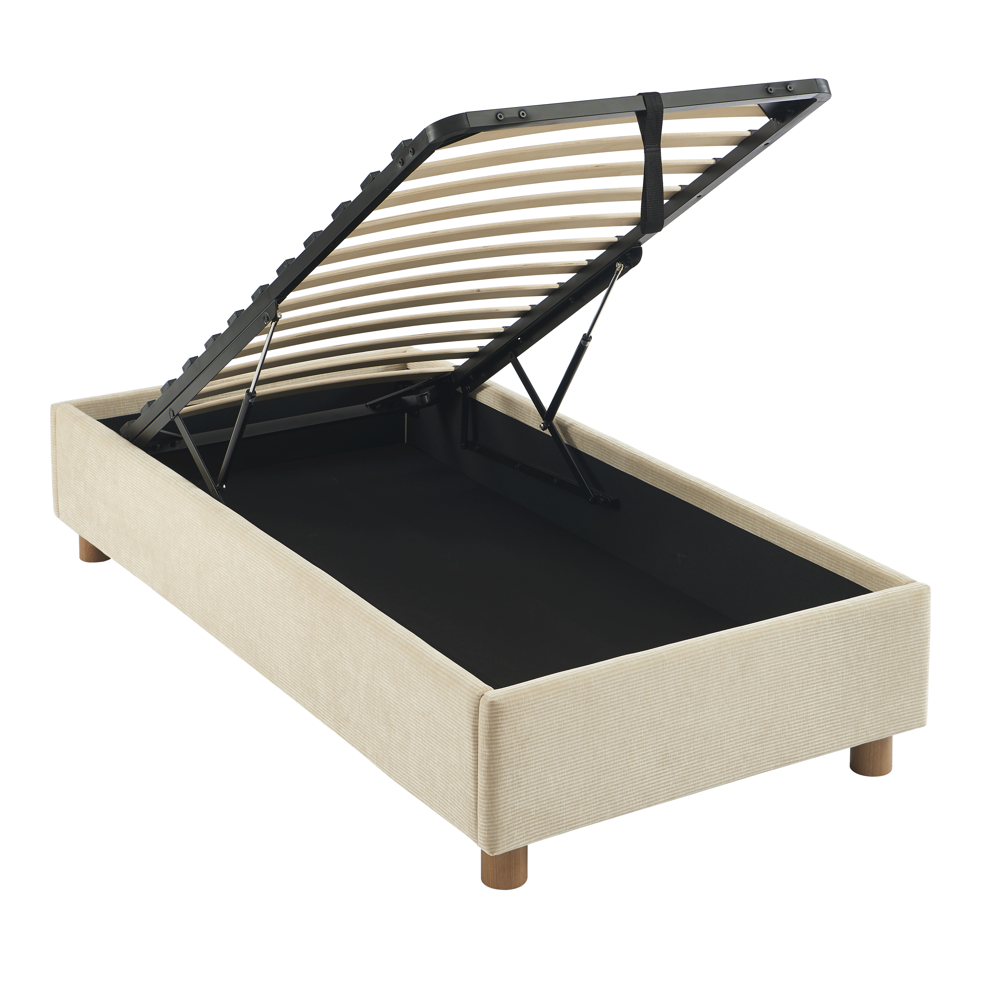 Lit coffre KORALL 90x190 velours côtelé beige sommier inclus