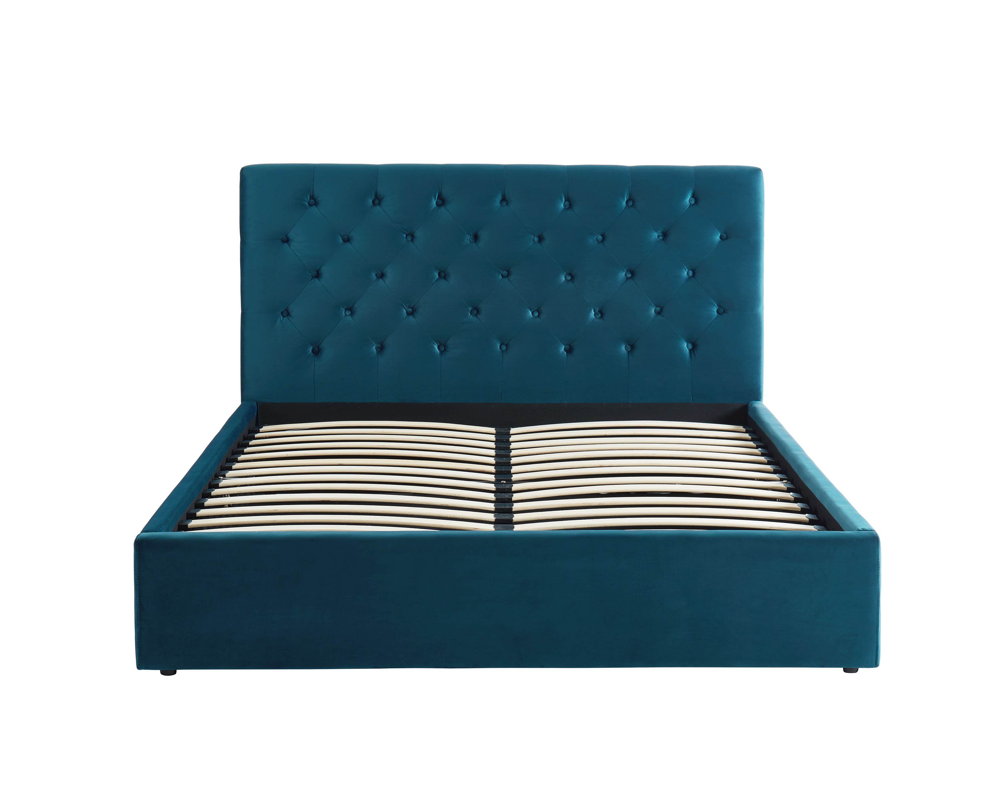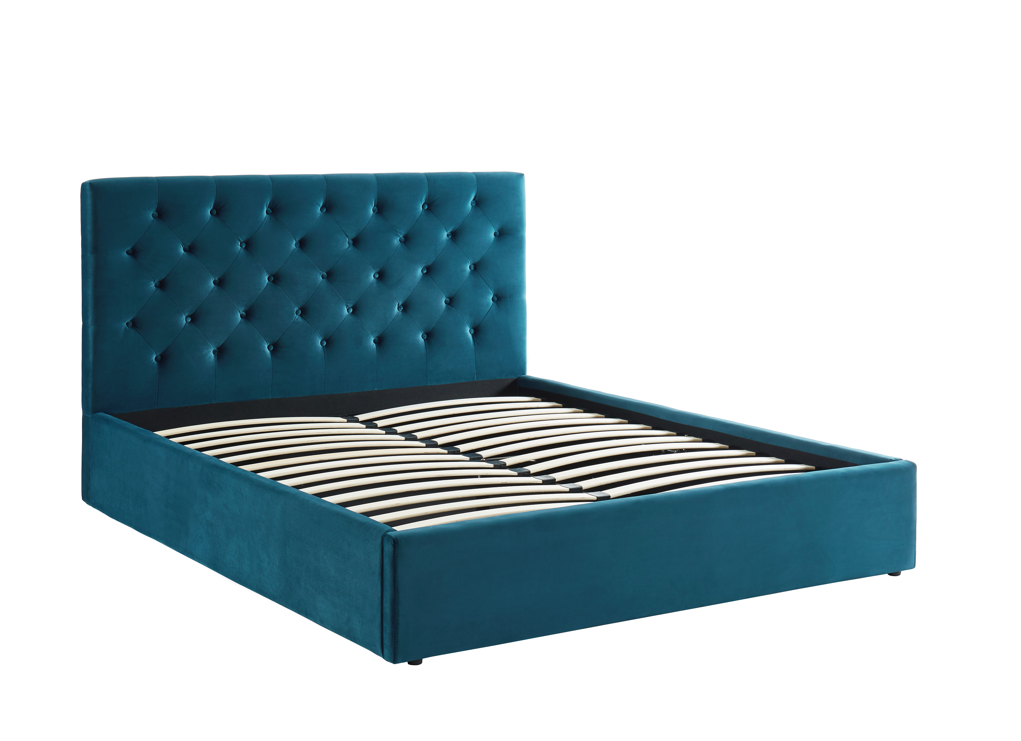 Lit double avec coffre HUBERT - Velours bleu - Couchage 160x200cm