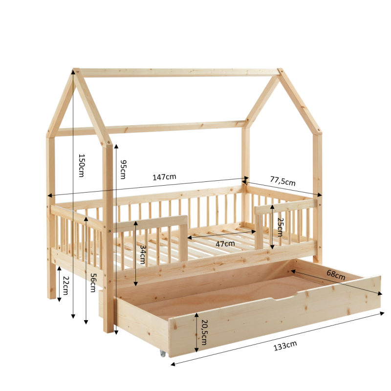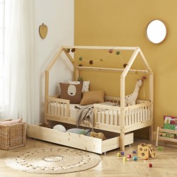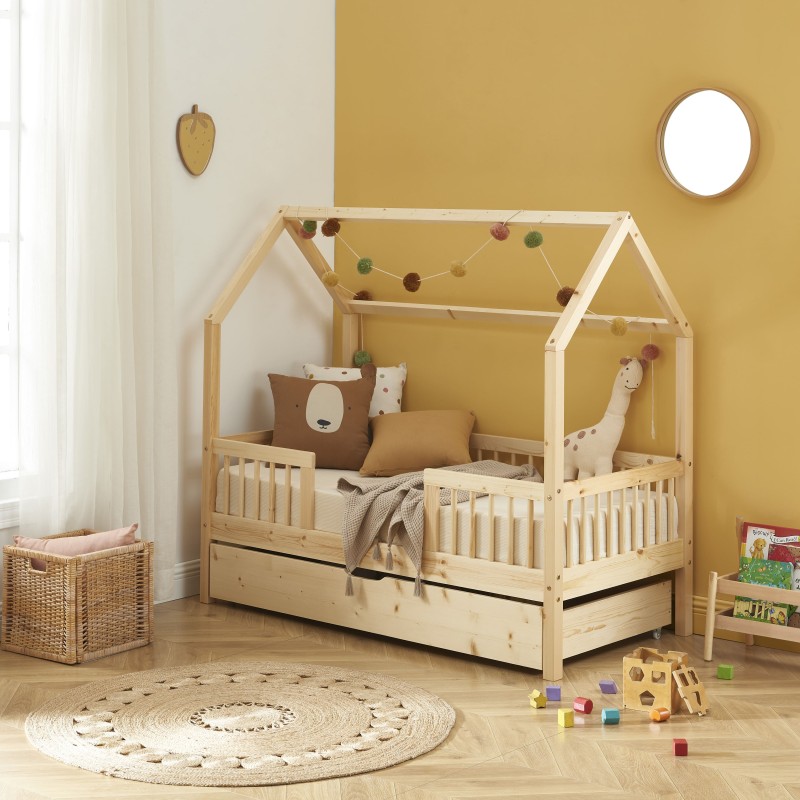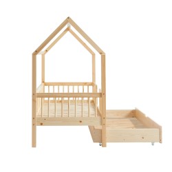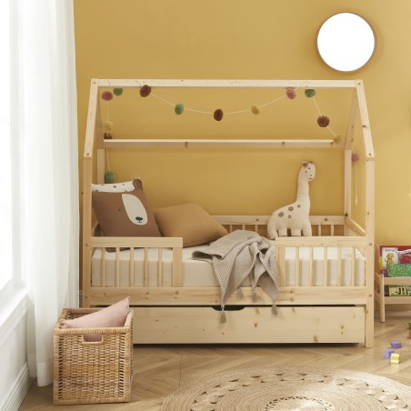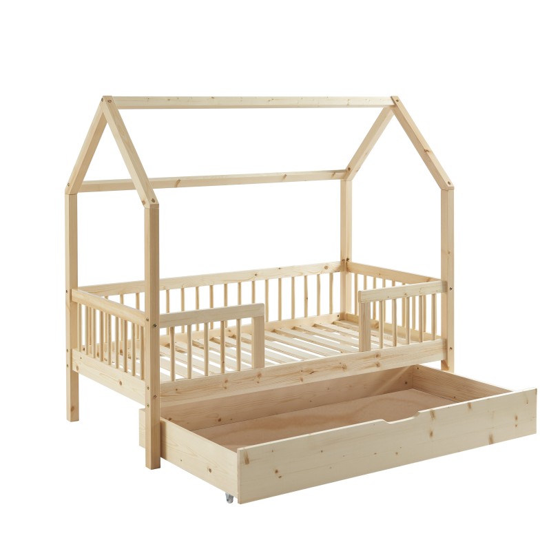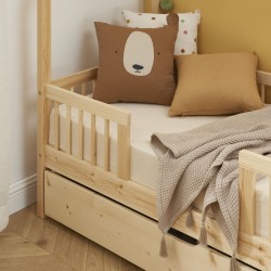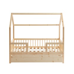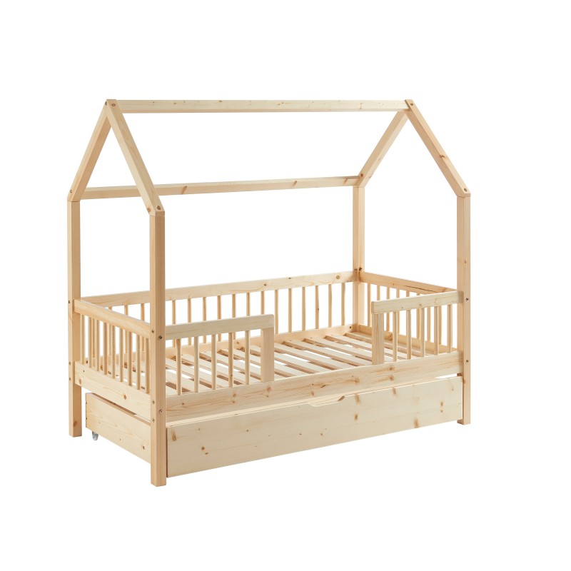 Lit cabane avec barrières TINY 90x190 pin massif sommier inclus