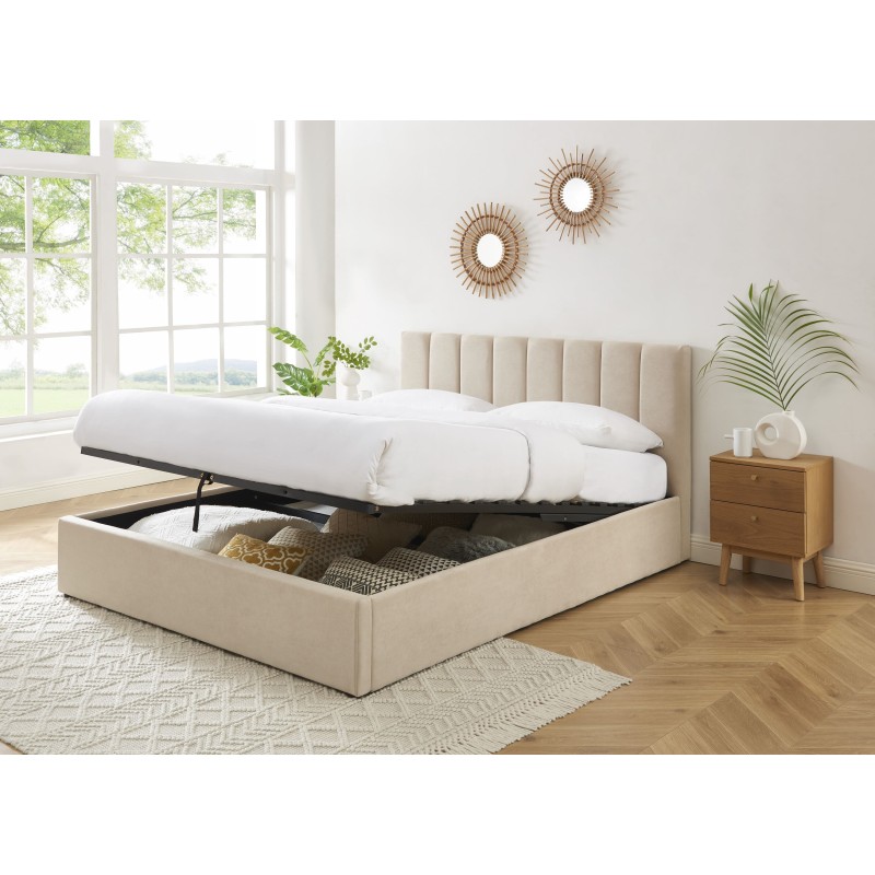 Vous êtes à la recherche d'un lit à la fois design et fonctionnel ? Optez pour ce magnifique lit coffre MARIUS. Avec sa tête de lit matelassée en tissu tramé beige, ce lit ajoutera un véritable cachet à votre chambre à coucher.