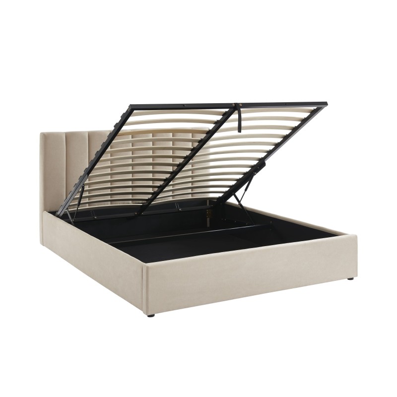 Son plus ? Son grand coffre de rangement situé sous son sommier à lattes, vous permettant ainsi de ranger vos affaires telles que vos couettes, linge de maison ou vêtements.