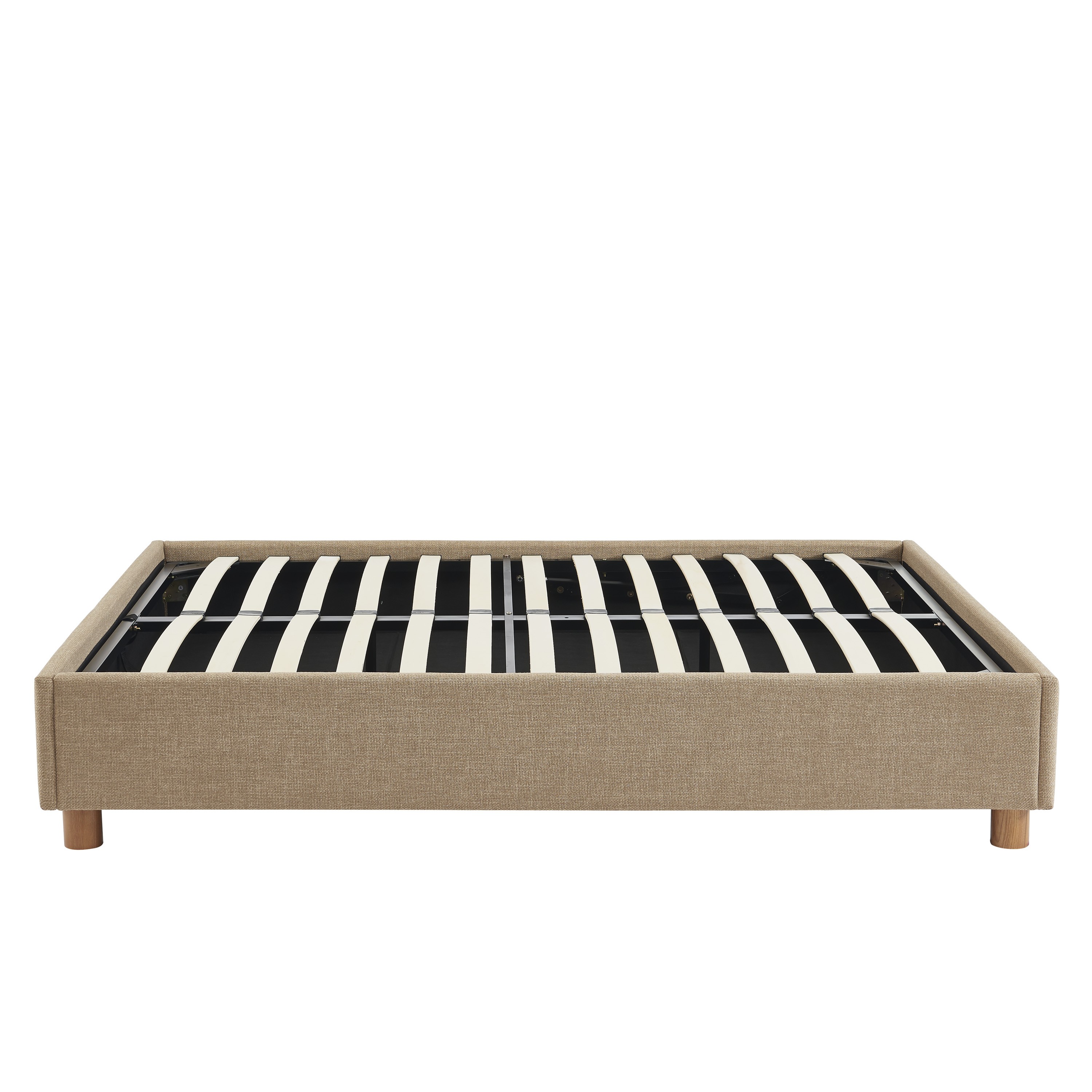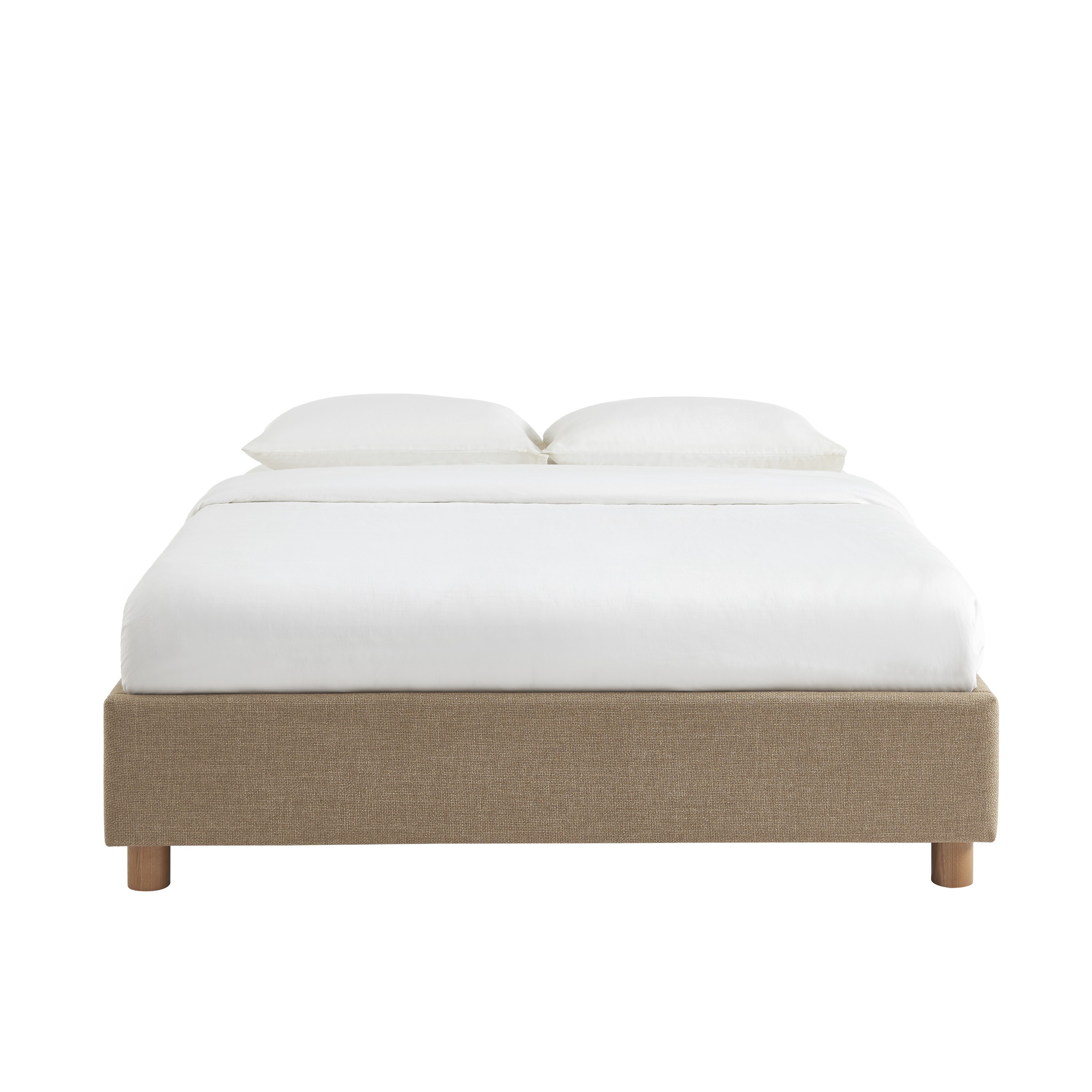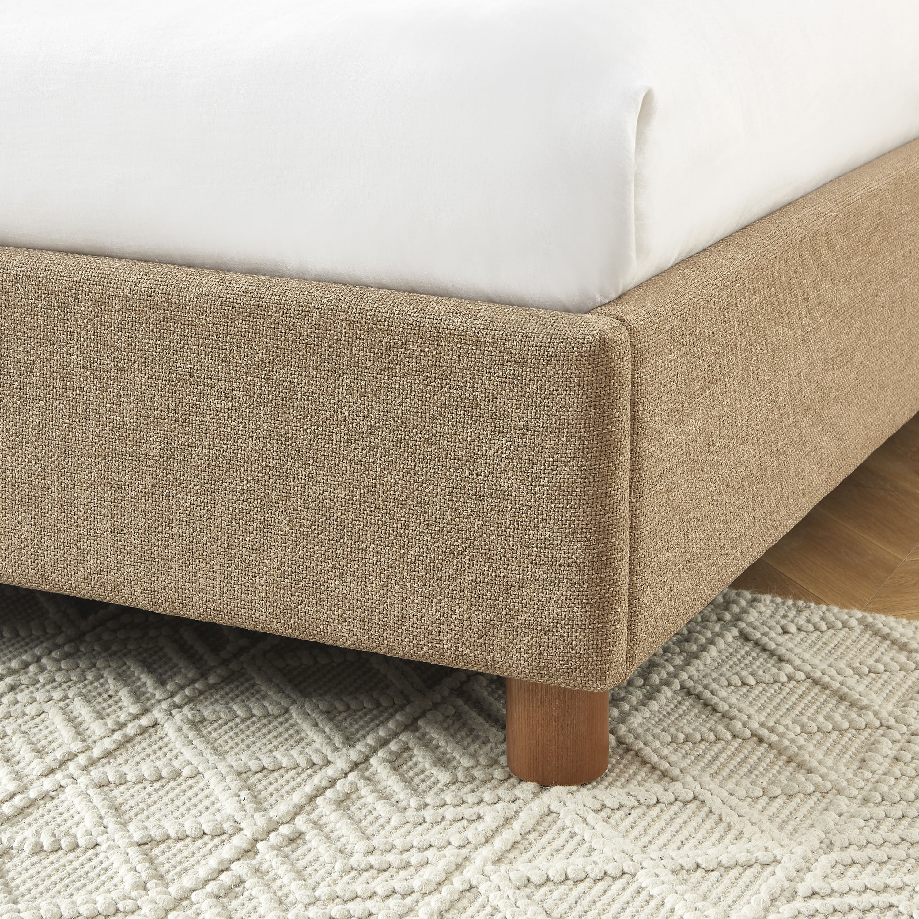 Enfin, les pieds en frêne massif de ce lit coffre en assurent la stabilité tout en mettant en valeur la texture du revêtement sur le cadre.
