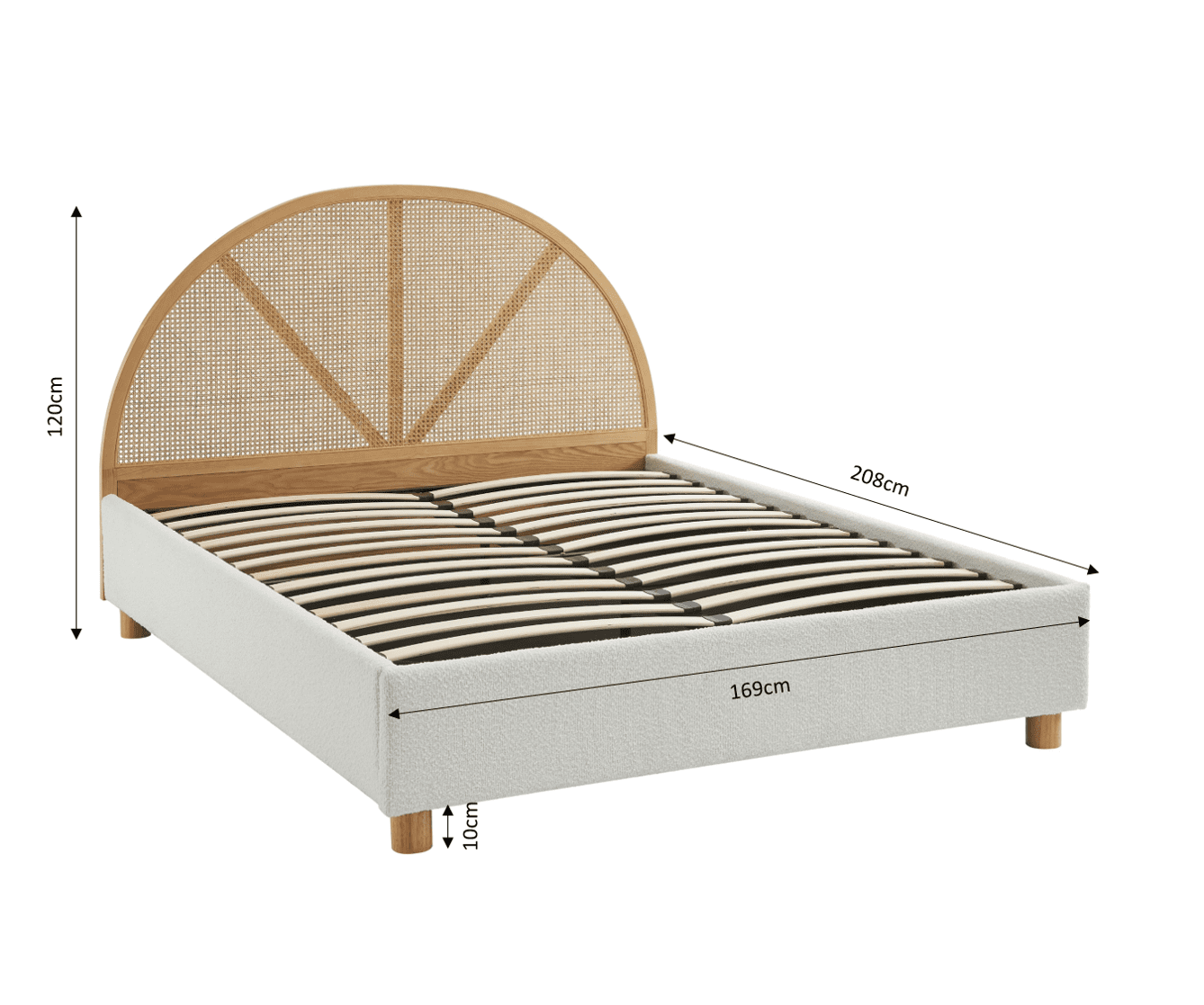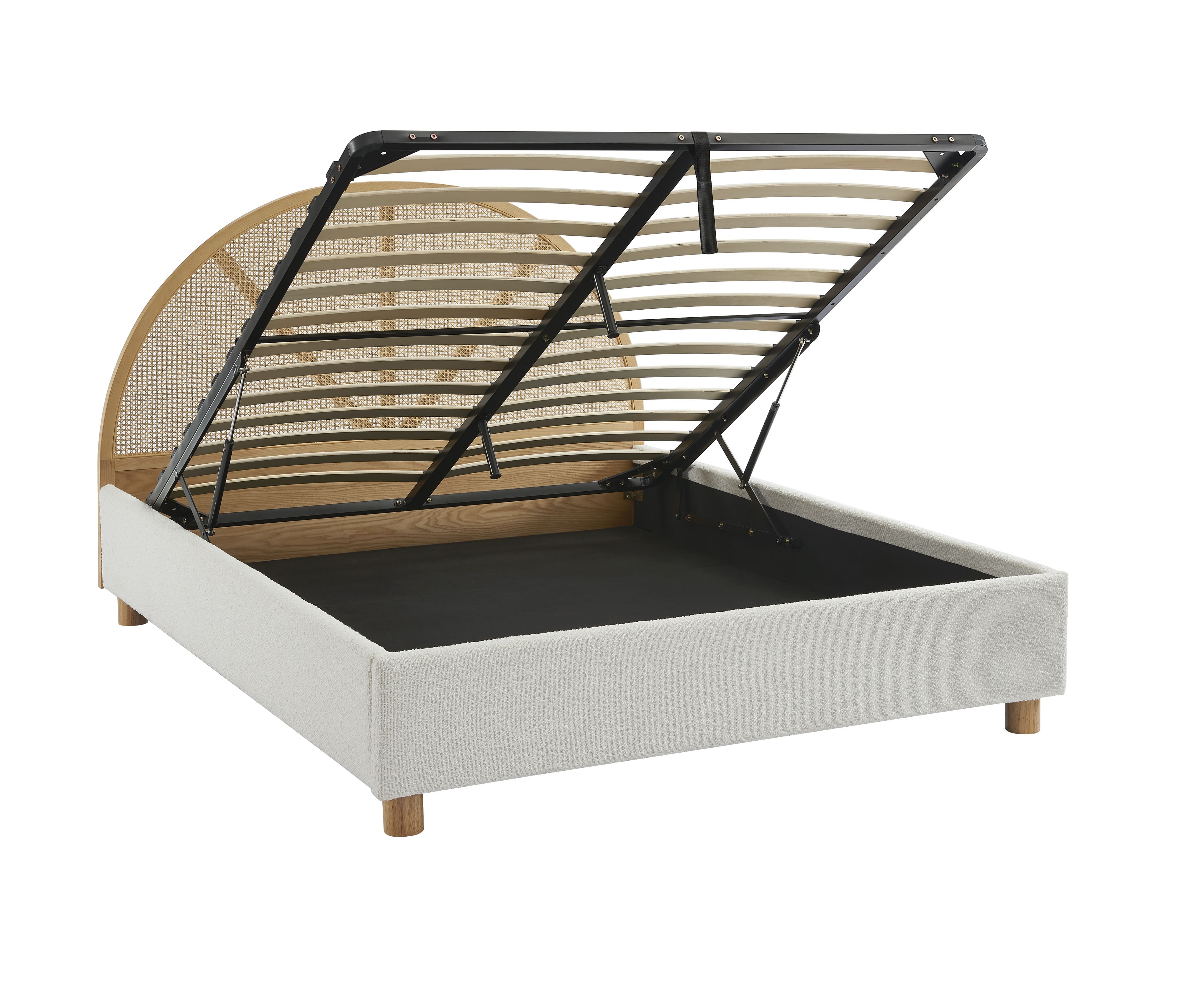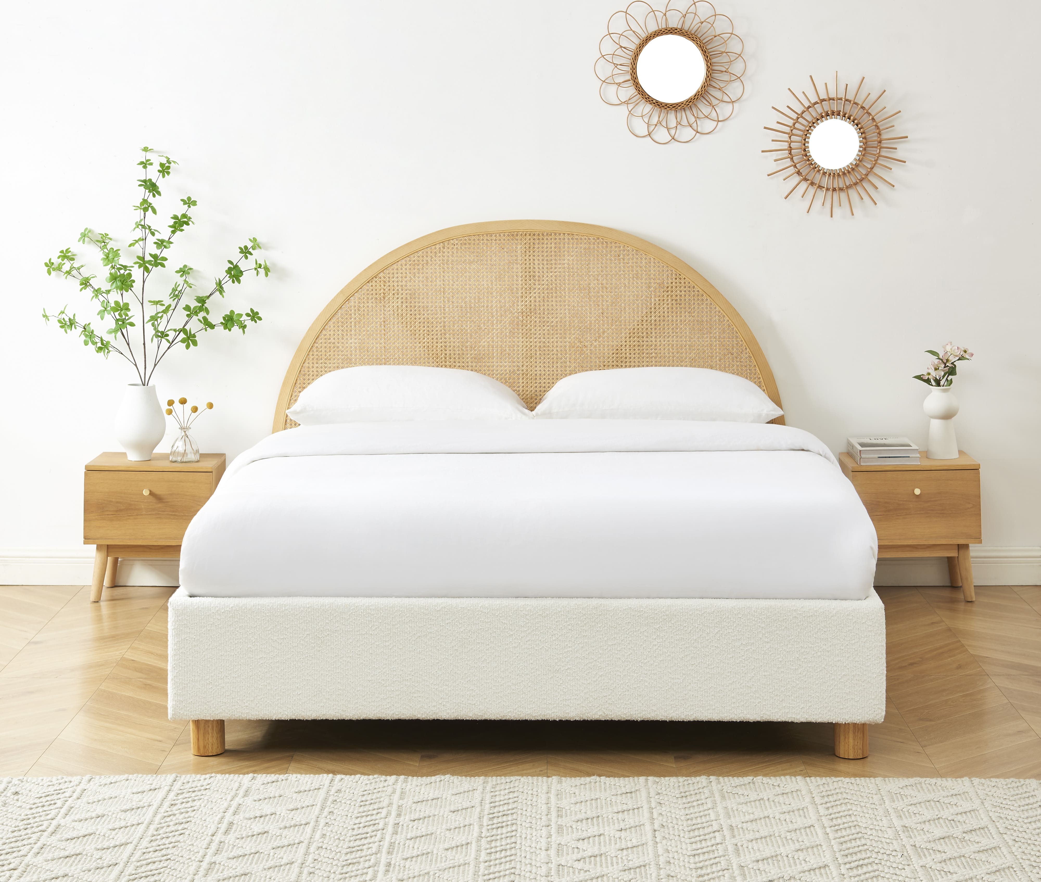 Pour votre chambre, optez pour le lit TSUKI. Alliant à la perfection le tissu bouclette et le cannage, TSUKI sera la pièce maitresse de votre chambre, ultra tendance. Son atout ? Son grand coffre de rangement situé sous le sommier, vous permettant de ranger couettes et oreillers en toute facilité.