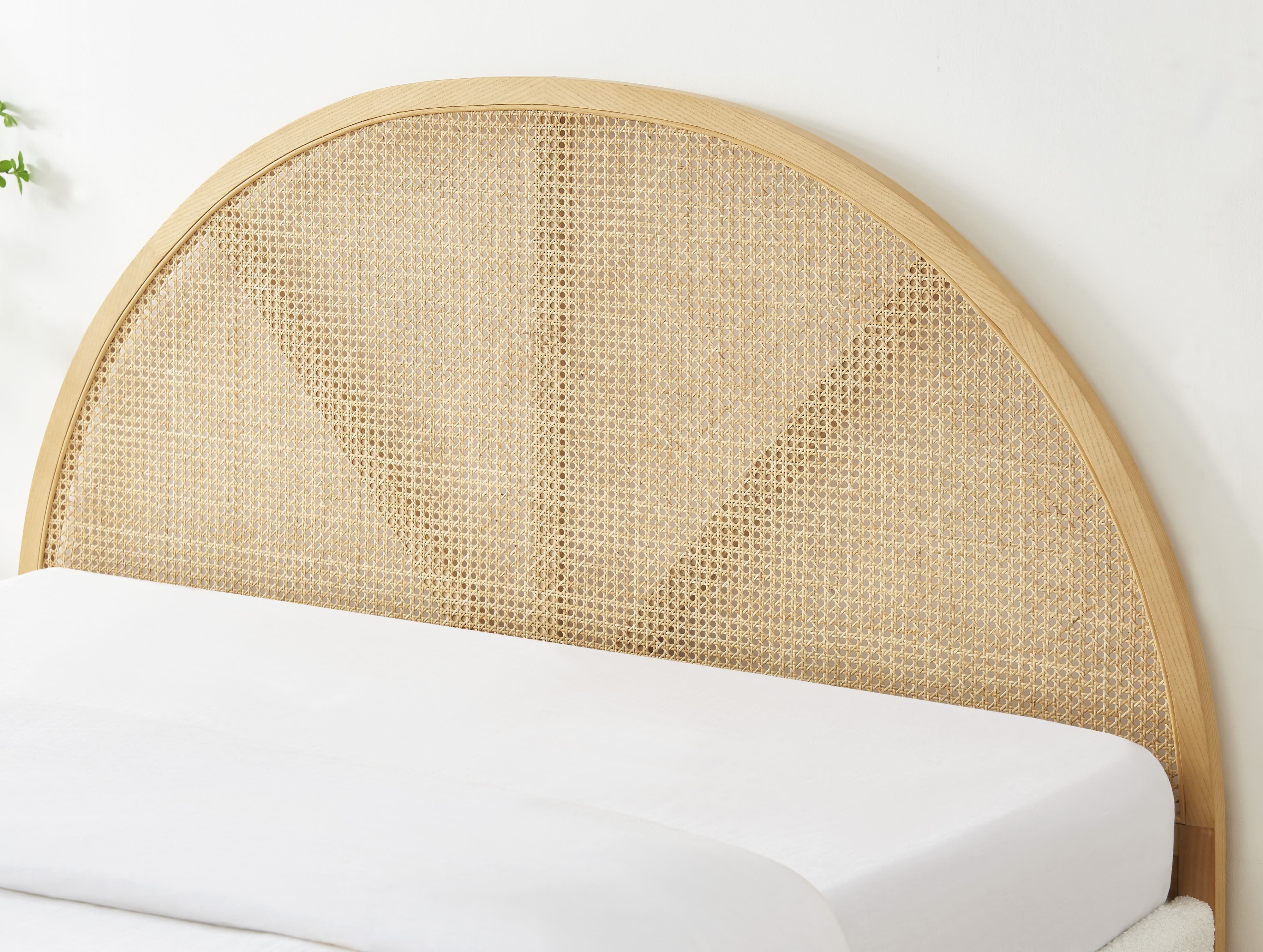 On aime également sa tête de lit en cannage circulaire, synonyme de douceur et de légèreté.