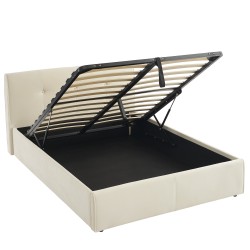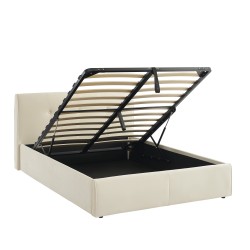 Lit coffre SEGURO 140x190 velours beige sommier inclus