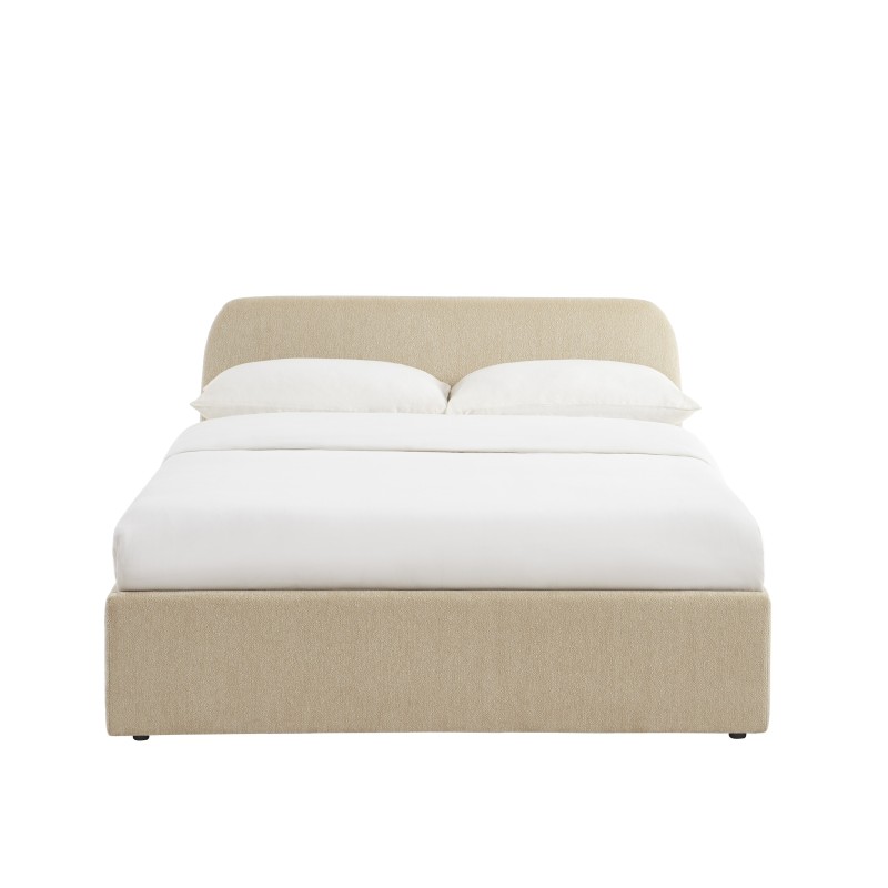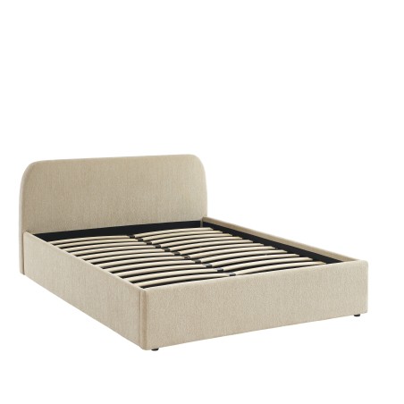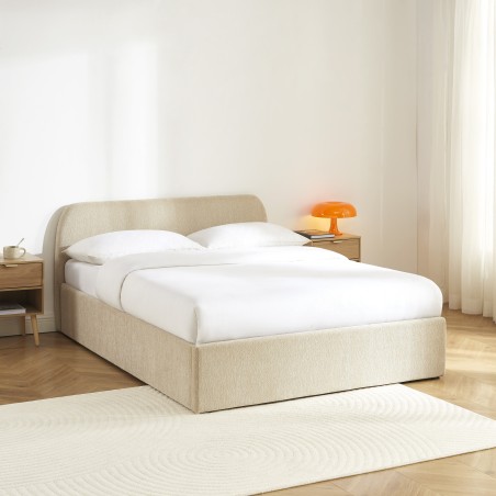 Lit coffre GELA 140x190 tissu chenille grège sommier inclus