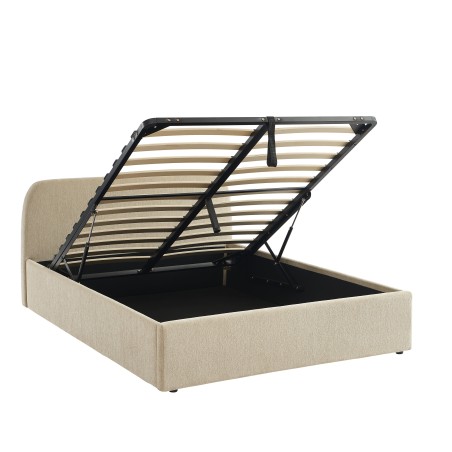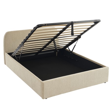 Profitez d'un coffre de rangement spacieux et pratique pour optimiser votre chambre. Grâce à son sommier relevable à lattes inclus et son fond en tissu, le lit GELA offre une solution idéale pour ranger vos couettes, oreillers ou tout autre objet du quotidien, tout en restant facilement accessible.