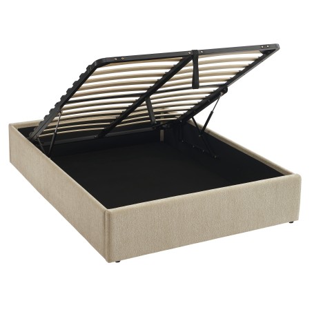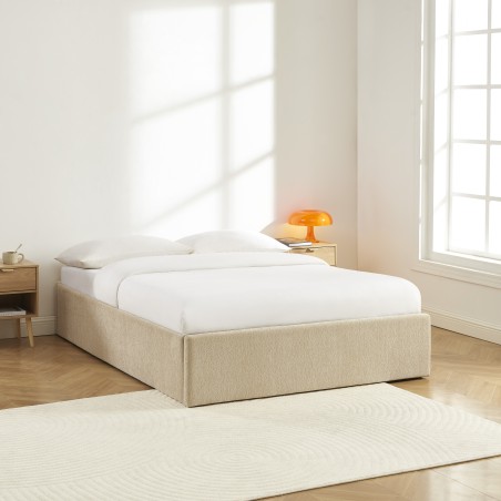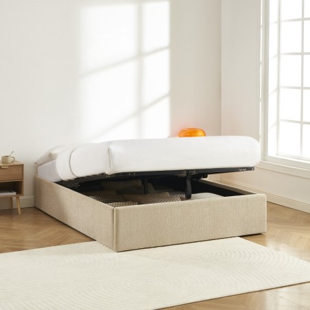 Lit coffre JELLY 160x200 tissu bouclette beige sommier inclus