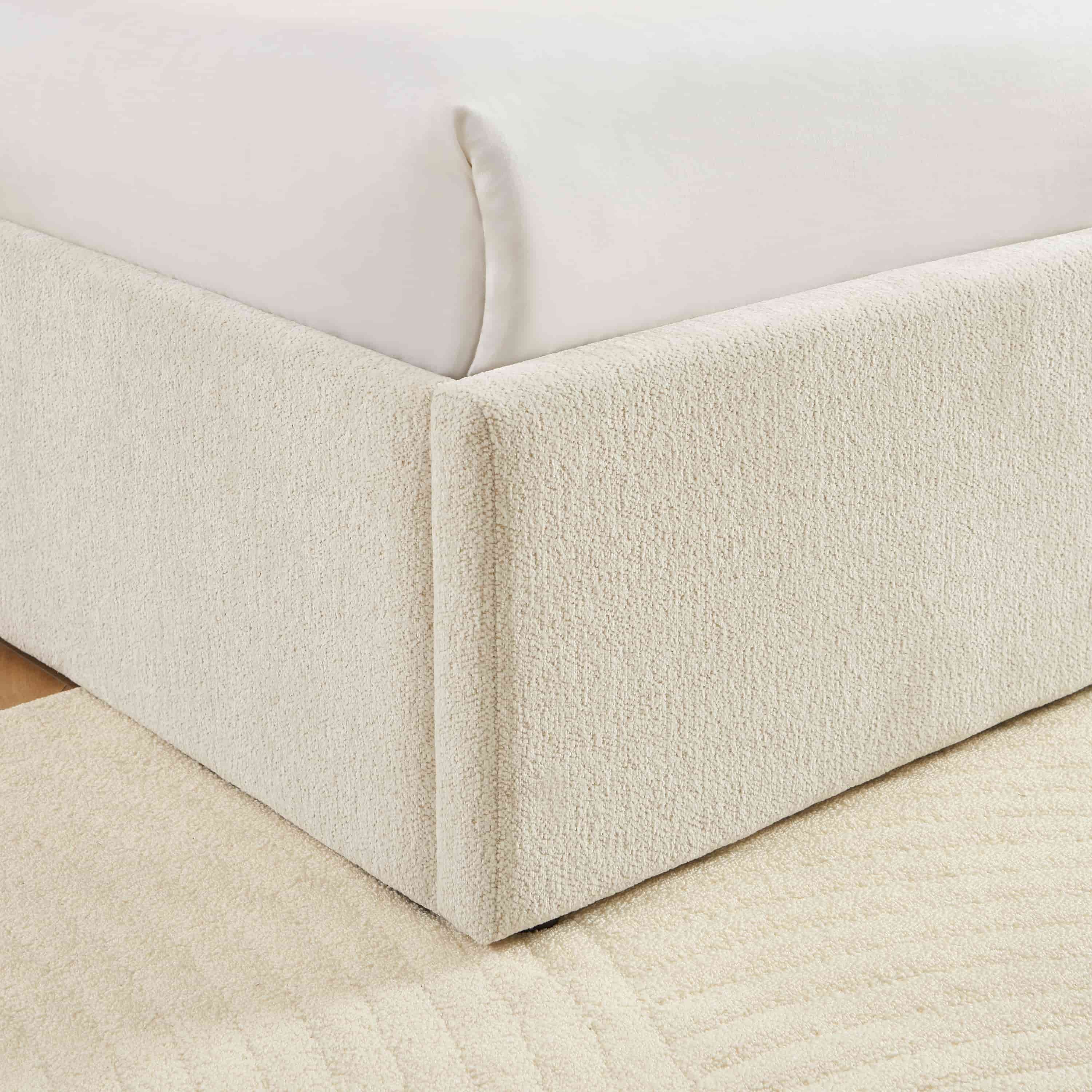 Le lit MARCY se distingue par son revêtement en tissu chenille, qui offre une texture douce et chaleureuse. Son allure épurée et discrète en fait une pièce idéale pour sublimer une chambre avec simplicité.