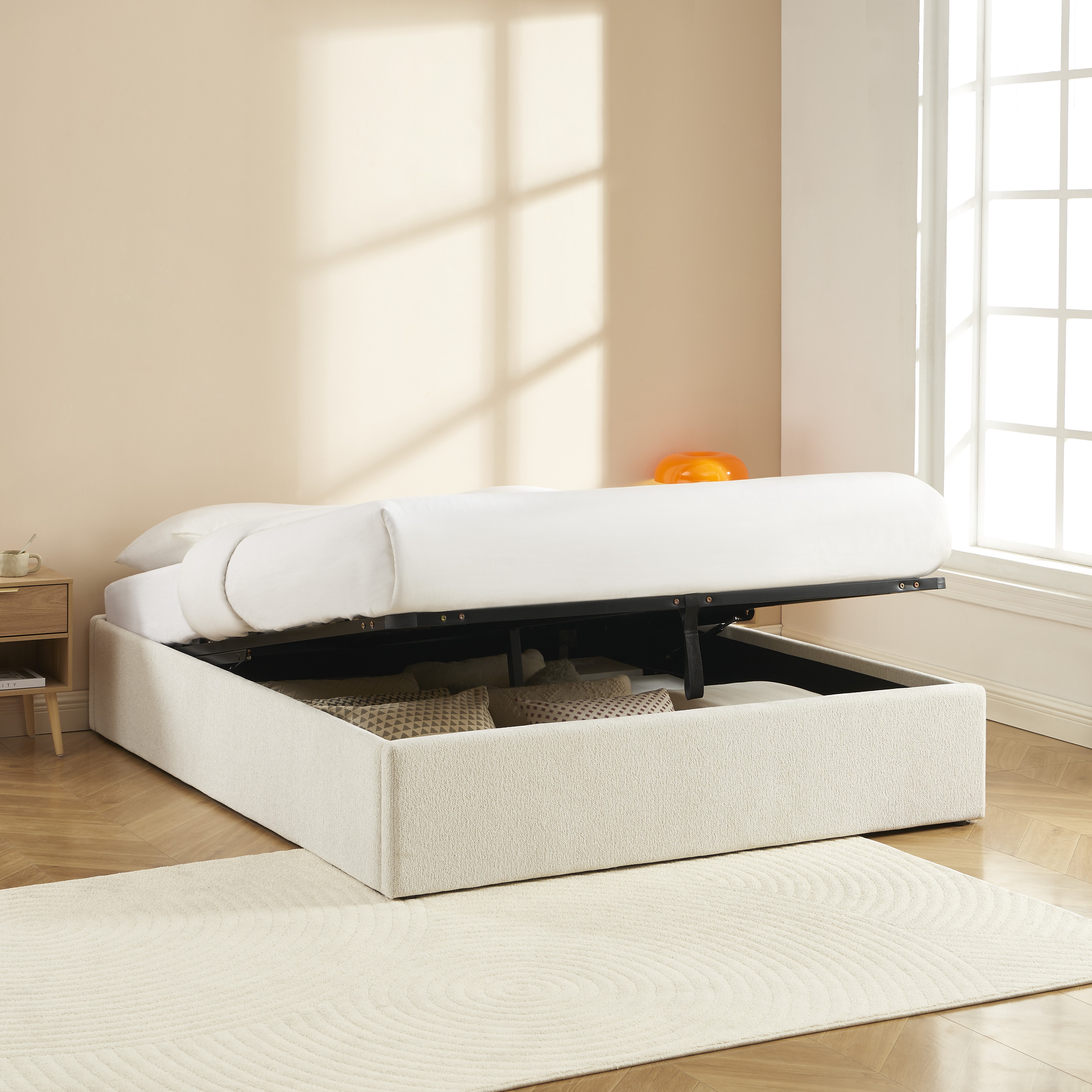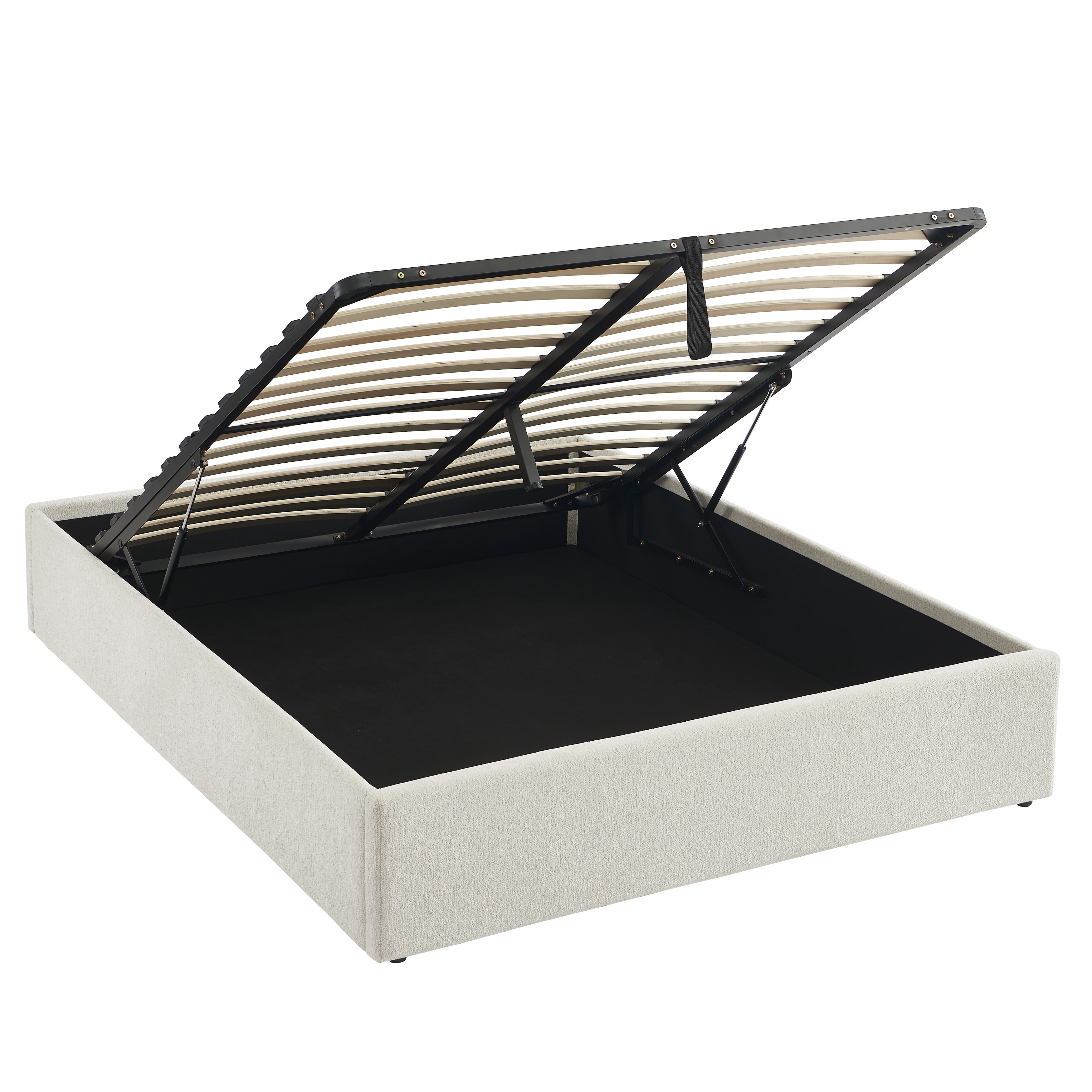 Lit coffre MARCY 160x200 tissu chenille beige sommier inclus