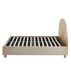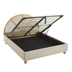 Lit coffre TSUKI 160x200 en velours beige sable et cannage sommier inclus