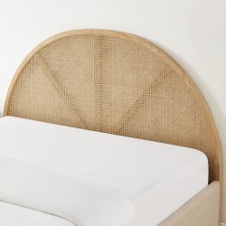 Avec des dimensions de couchage de 160 x 200 cm, ce lit propose un espace spacieux et confortable, idéal pour des nuits de sommeil profond. Le cadre de lit rectangulaire assure une structure solide et stable, tandis que la tête de lit arrondie en cannage rotin naturel ajoute une note de légèreté et d'authenticité. Ce détail raffiné et artisanal confère au lit TSUKI un charme unique, parfait pour une ambiance naturelle et chic.
