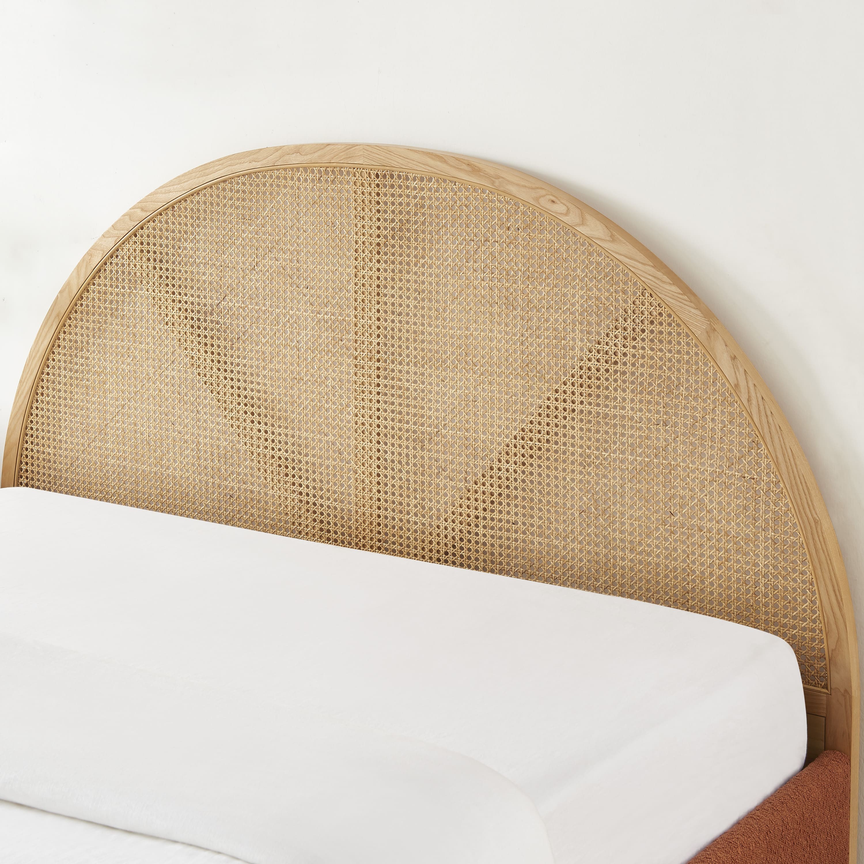 Avec des dimensions de couchage de 160 x 200 cm, ce lit propose un espace spacieux et confortable, idéal pour des nuits de sommeil profond. Le cadre de lit rectangulaire assure une structure solide et stable, tandis que la tête de lit arrondie en cannage rotin naturel ajoute une note de légèreté et d'authenticité. Ce détail raffiné et artisanal confère au lit TSUKI un charme unique, parfait pour une ambiance naturelle et chic.