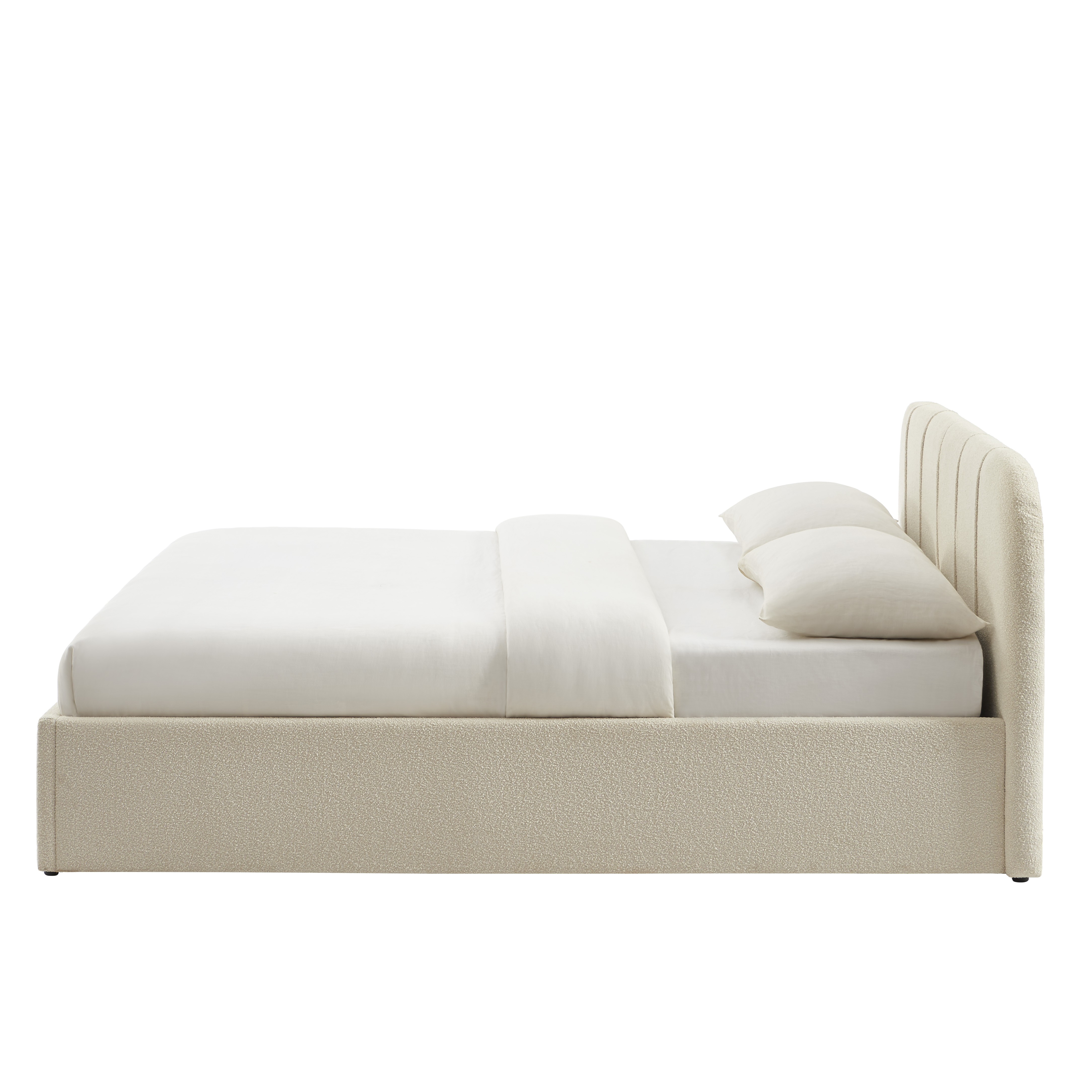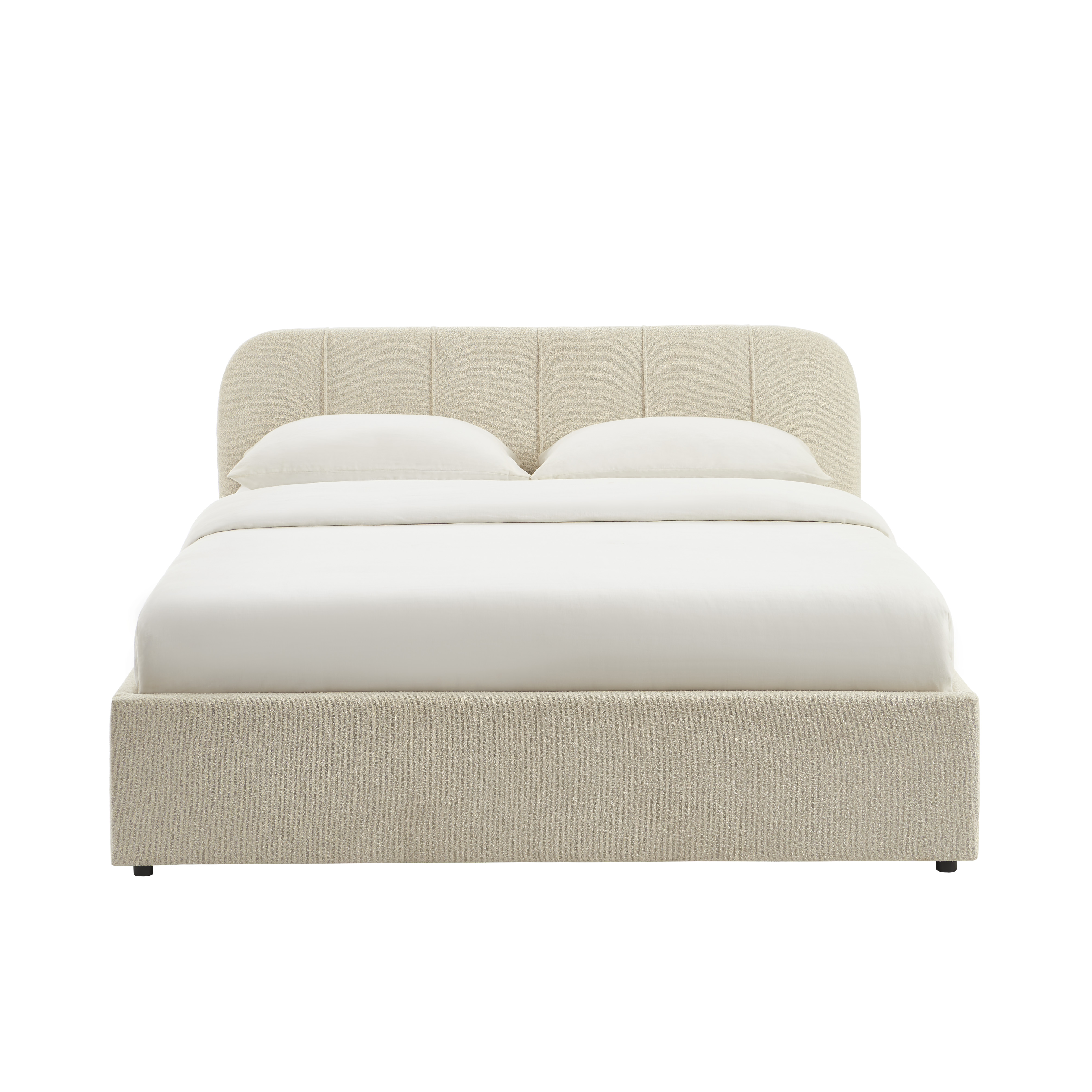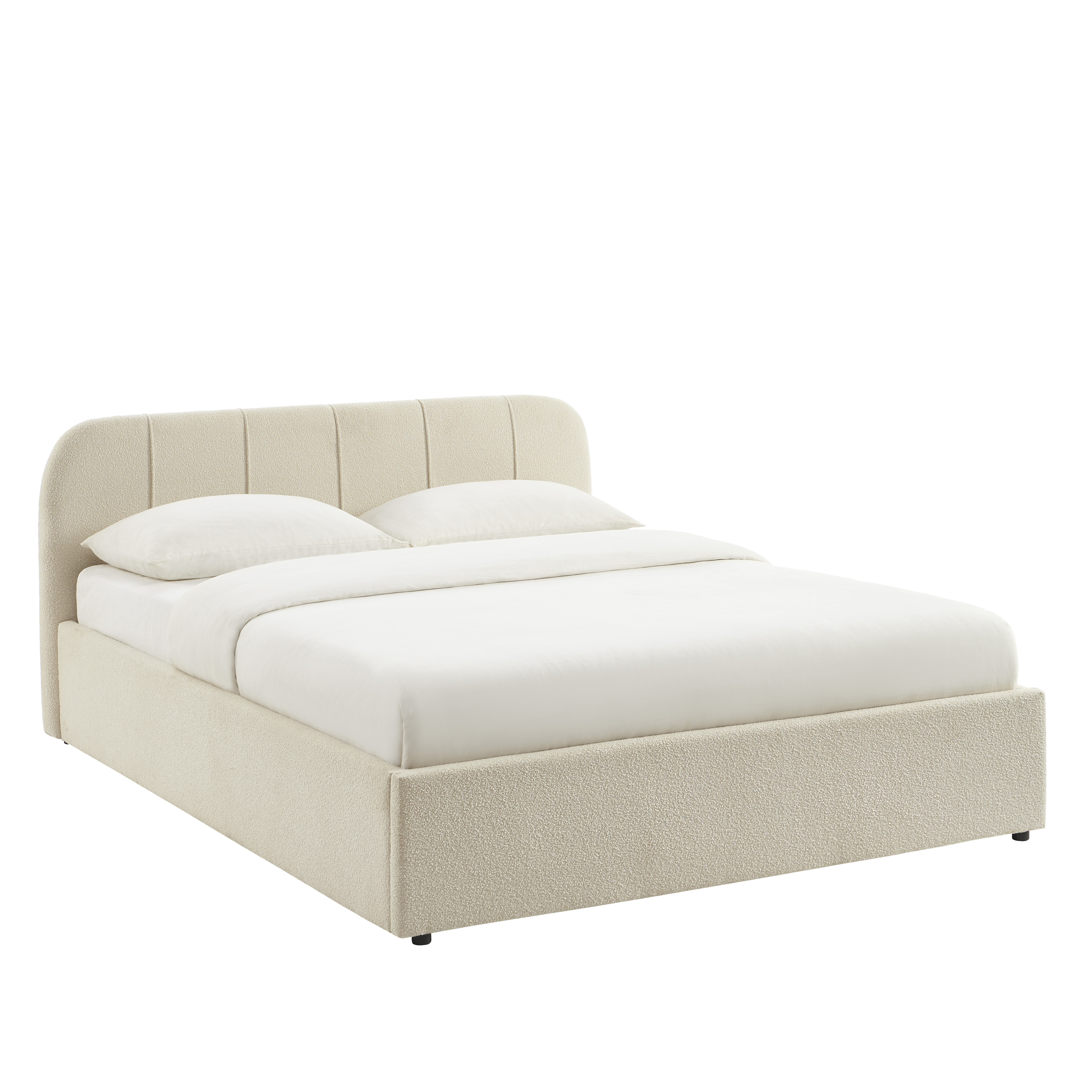 Gagnez en style et en rangement avec le lit coffre YUME. Son revêtement en tissu chenille beige et sa tête de lit capitonnée apporteront une touche chaleureuse et moderne à votre chambre.