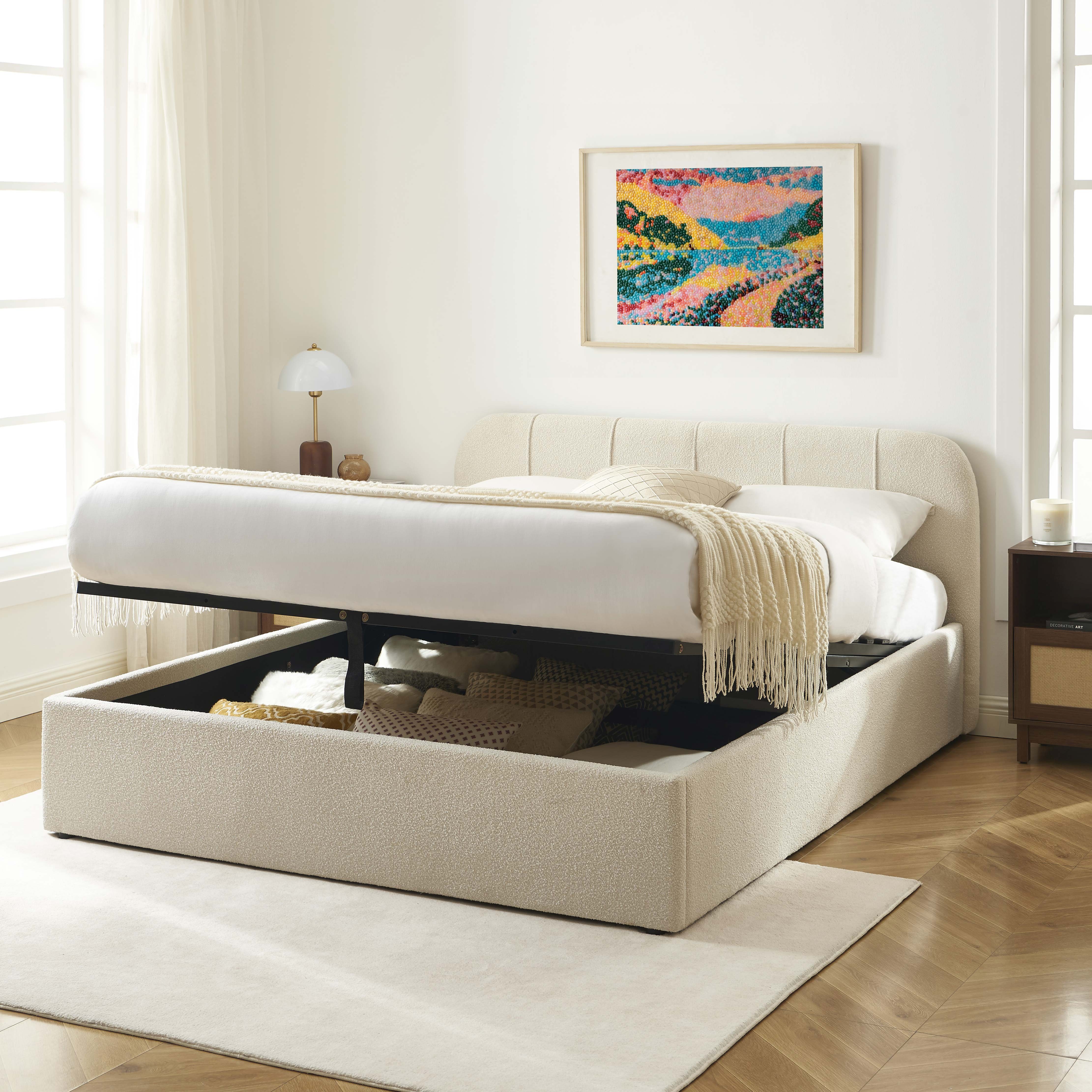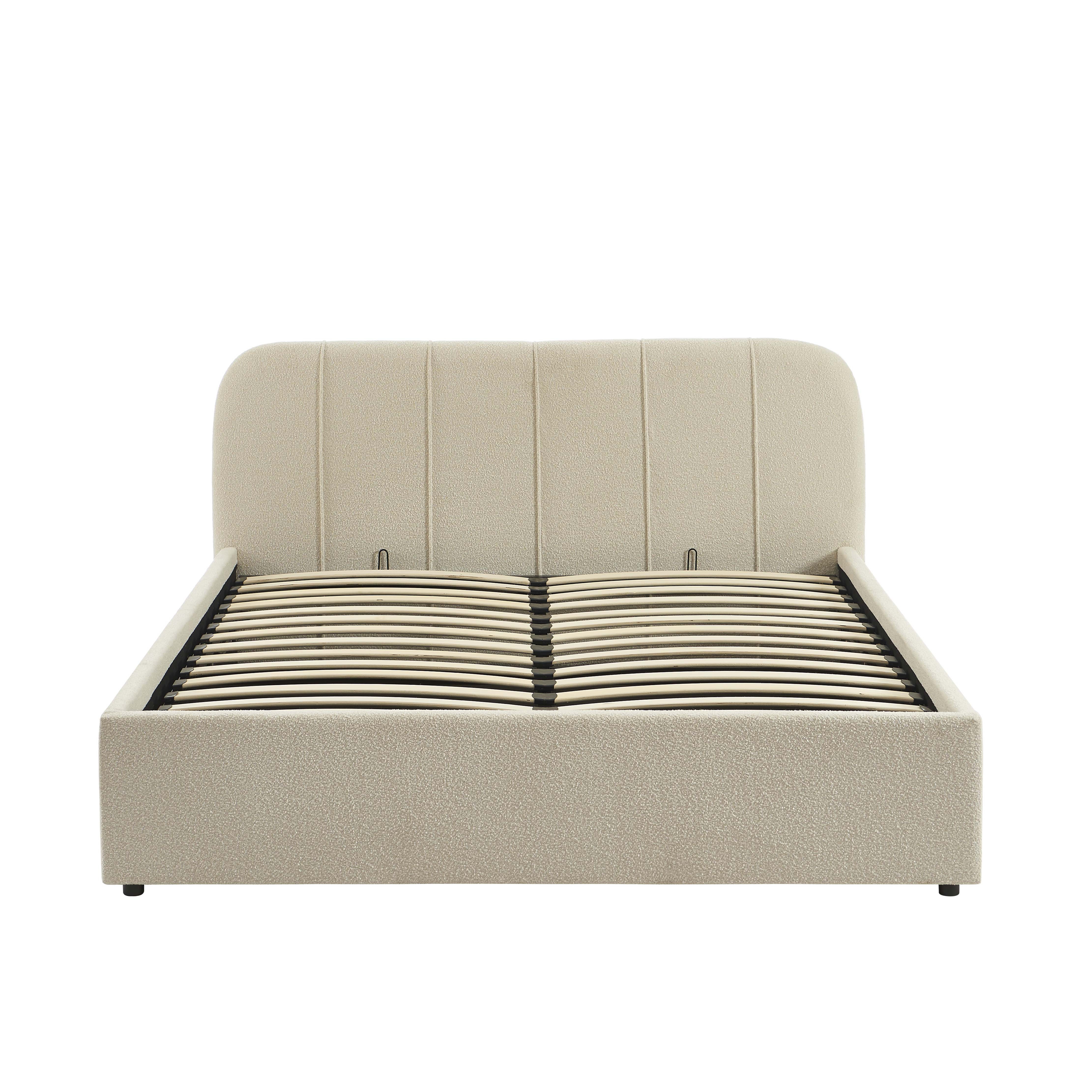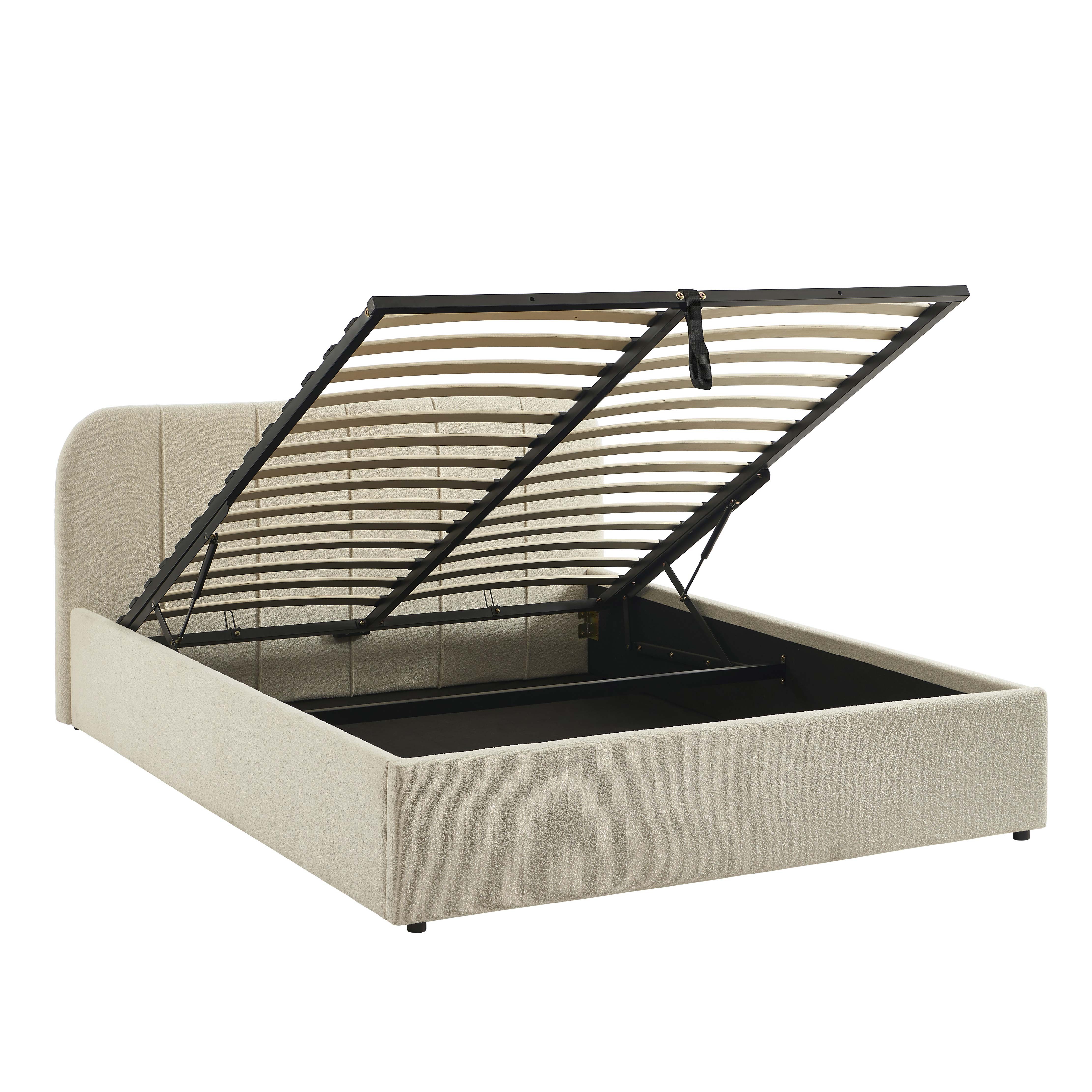 Lit coffre YUME tissu chenille beige 160x200 sommier inclus