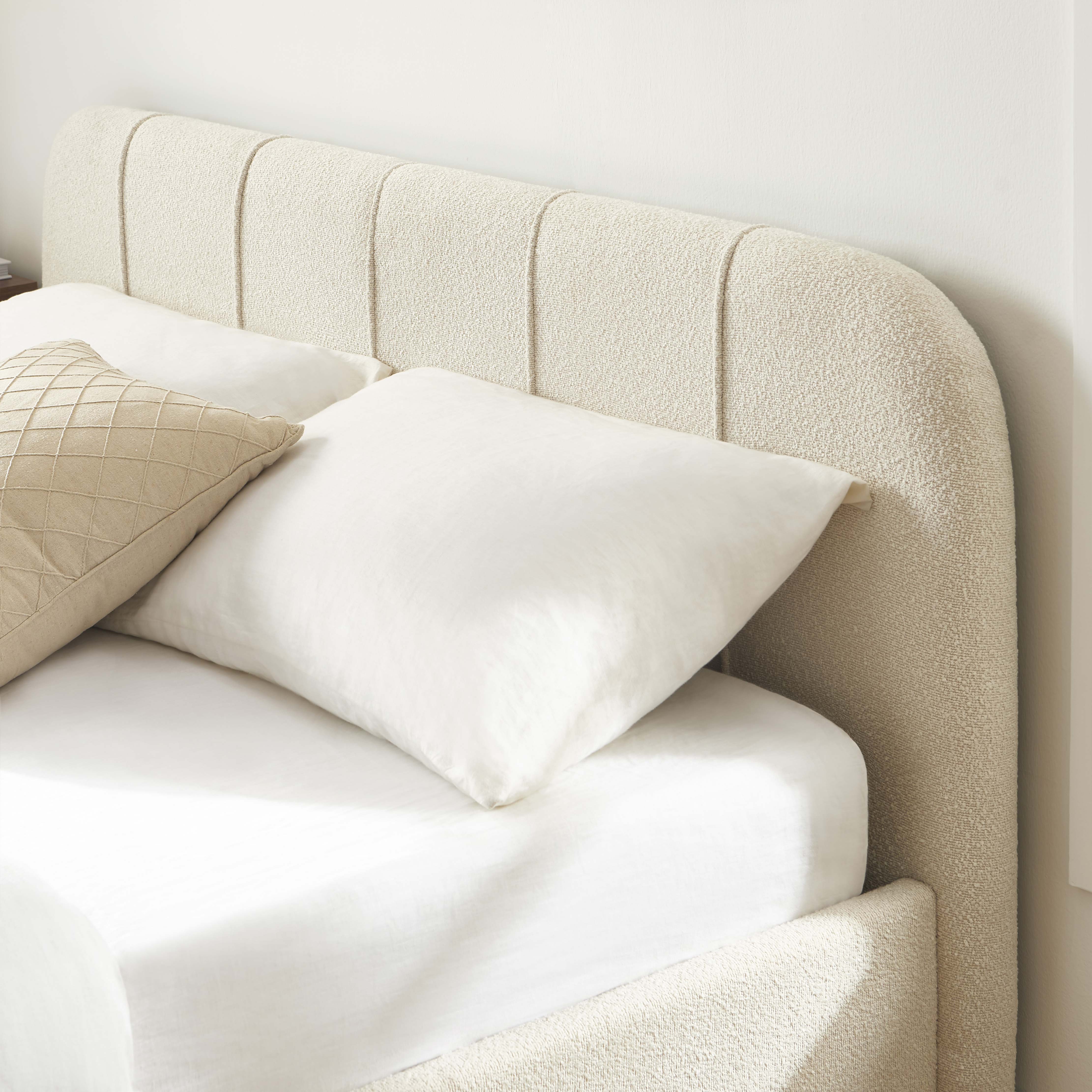 Le lit YUME séduit par son revêtement en tissu chenille beige, à la texture douce et agréable au toucher. Sa tête de lit capitonnée aux lignes sobres apporte un confort supplémentaire pour vos moments de lecture ou de détente.