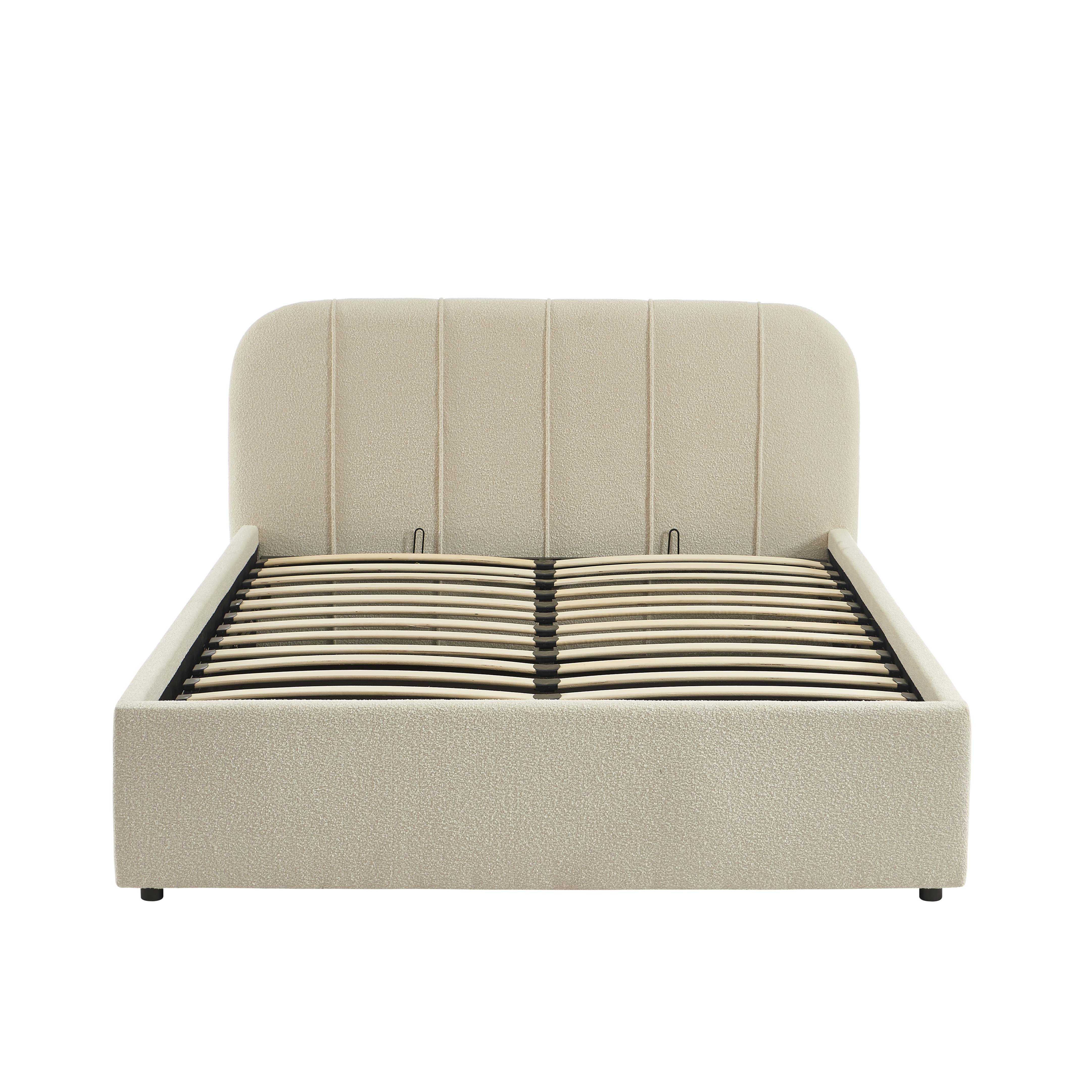 Gagnez en style et en rangement avec le lit coffre YUME. Son revêtement en tissu chenille beige et sa tête de lit capitonnée apporteront une touche chaleureuse et moderne à votre chambre.