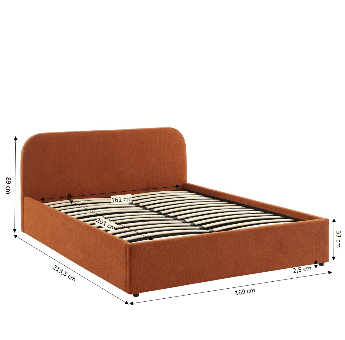Lit coffre MOKA tissu rouille 160x200 sommier inclus