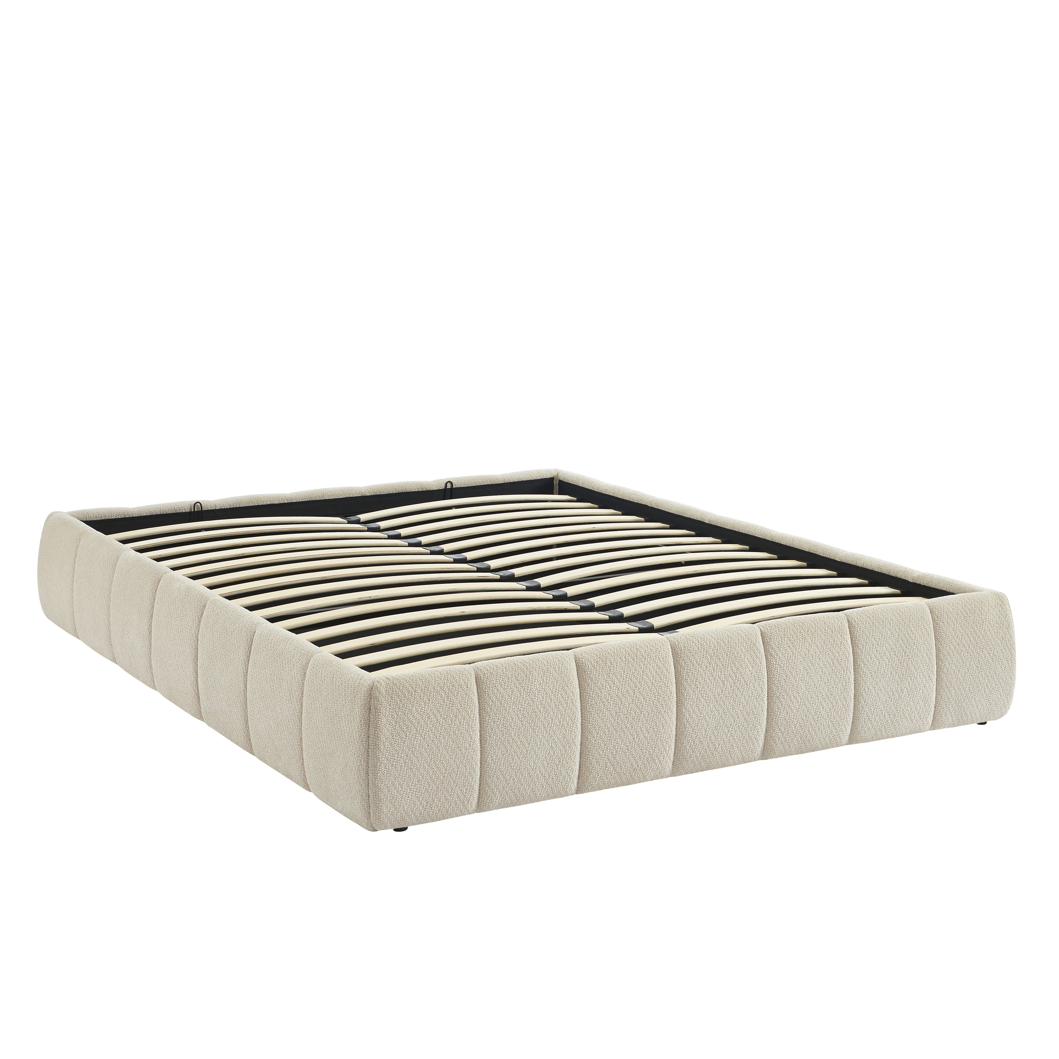 Lit coffre LAVINIA tissu chenille beige 160x200 sommier inclus