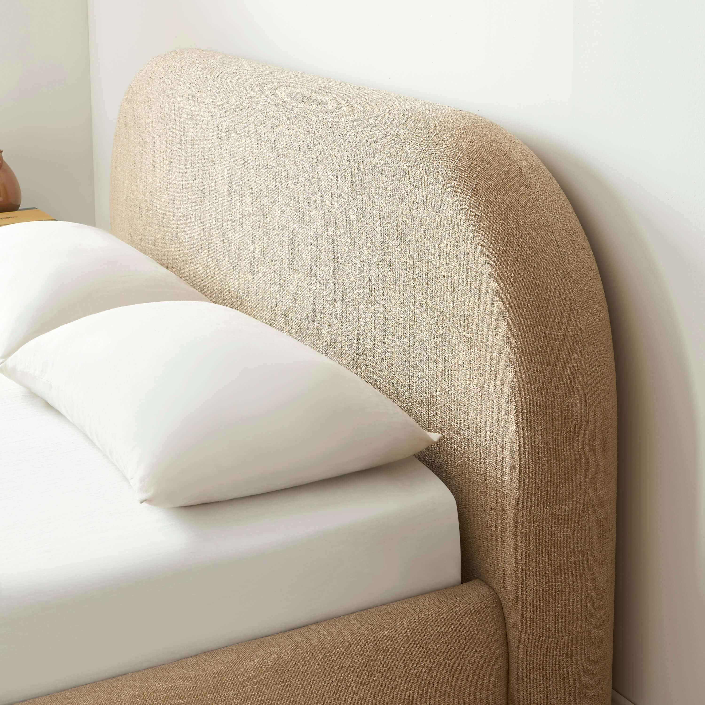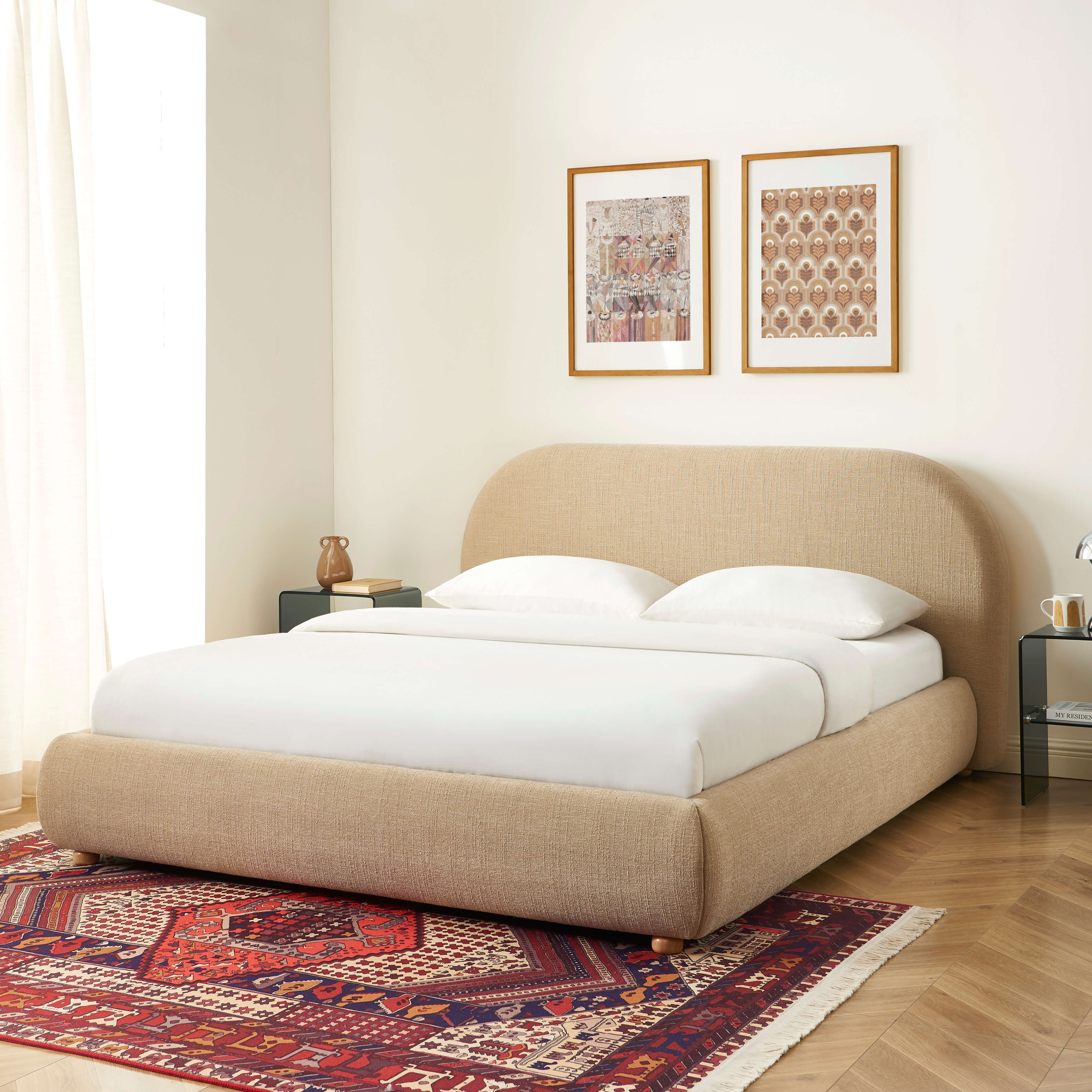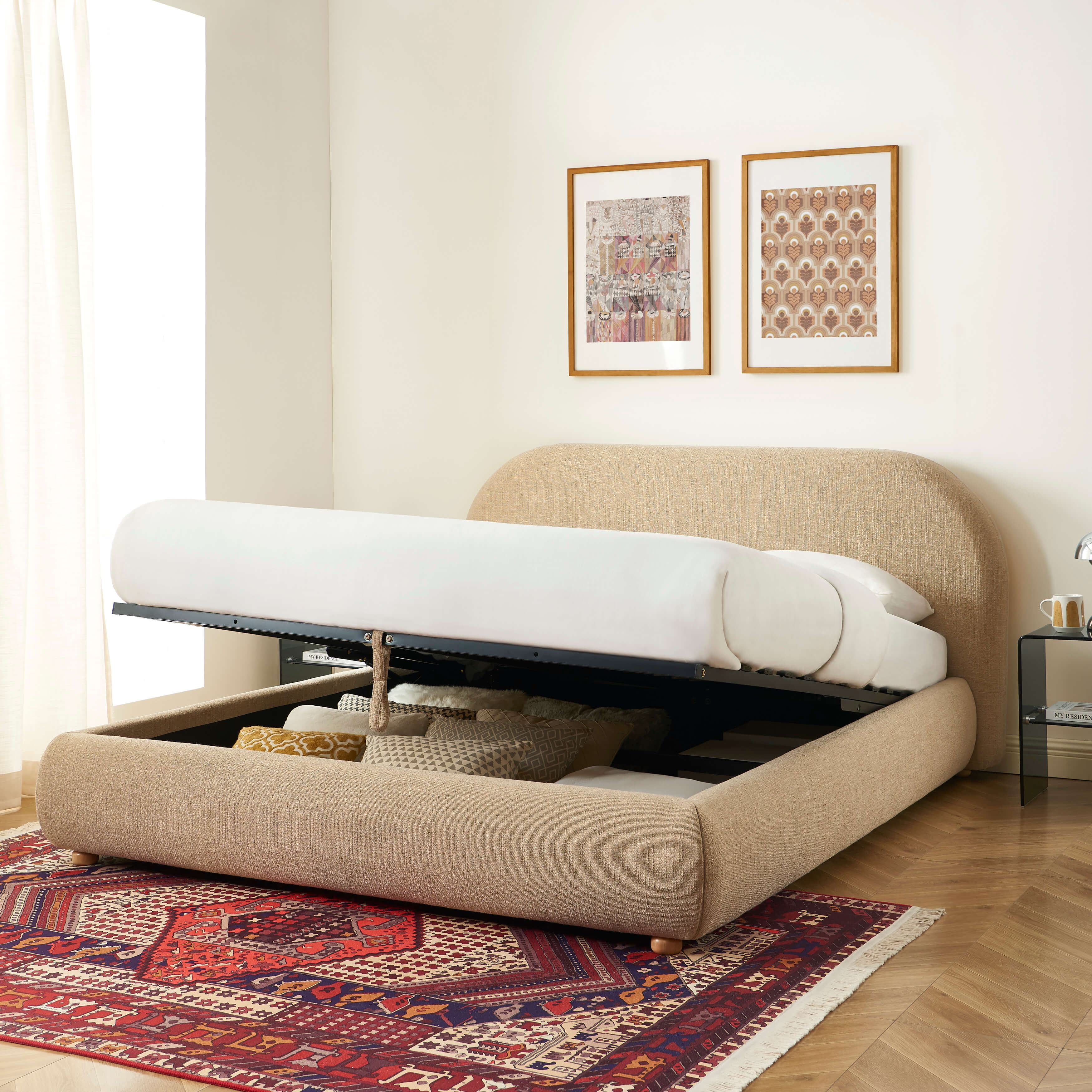 Avec ses lignes arrondies et son revêtement en tissu bouclette beige, le lit coffre JELLY s'impose comme une pièce élégante et chaleureuse dans la chambre. Son style contemporain et sa texture douce créent une ambiance cocooning idéale pour un espace nuit à la fois raffiné et confortable.