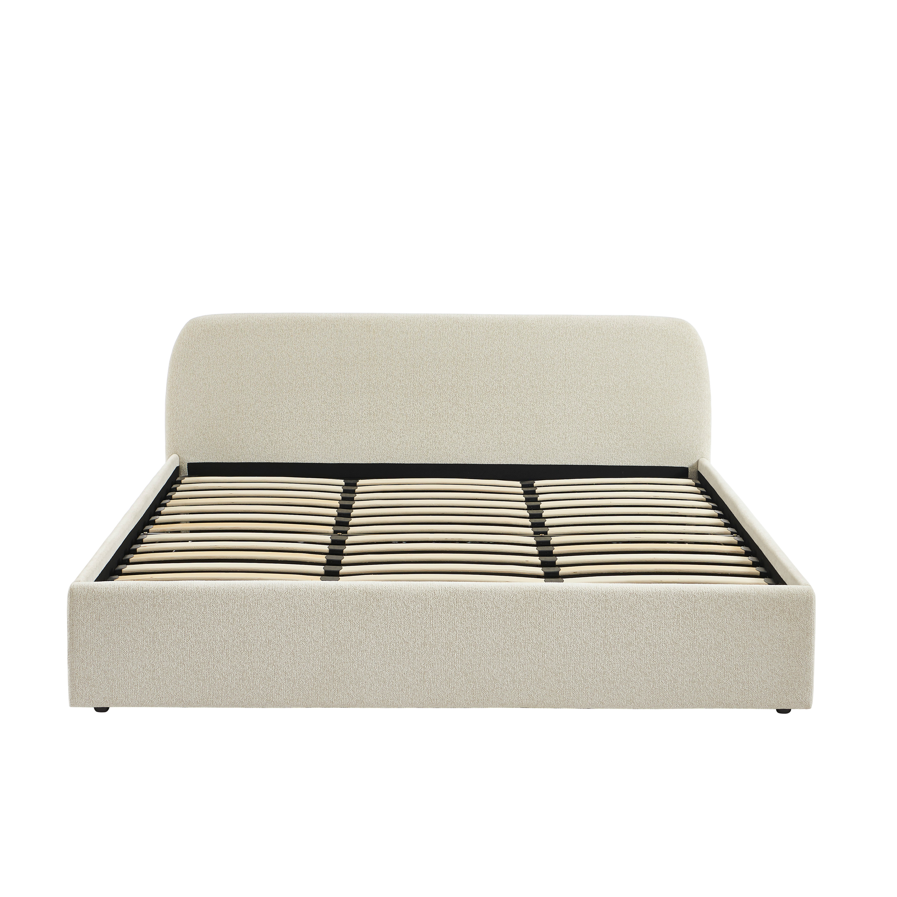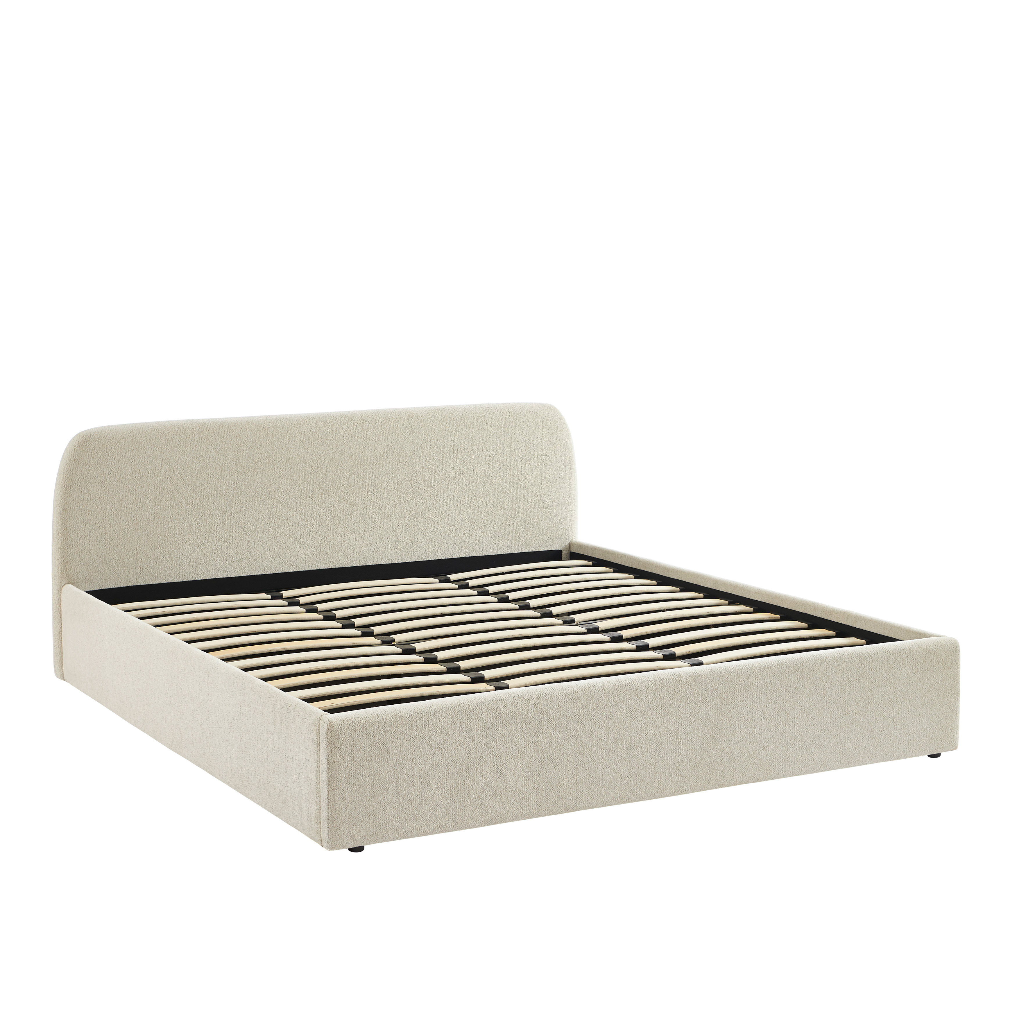 Lit coffre GELA 180x200 tissu chenille beige sommier inclus