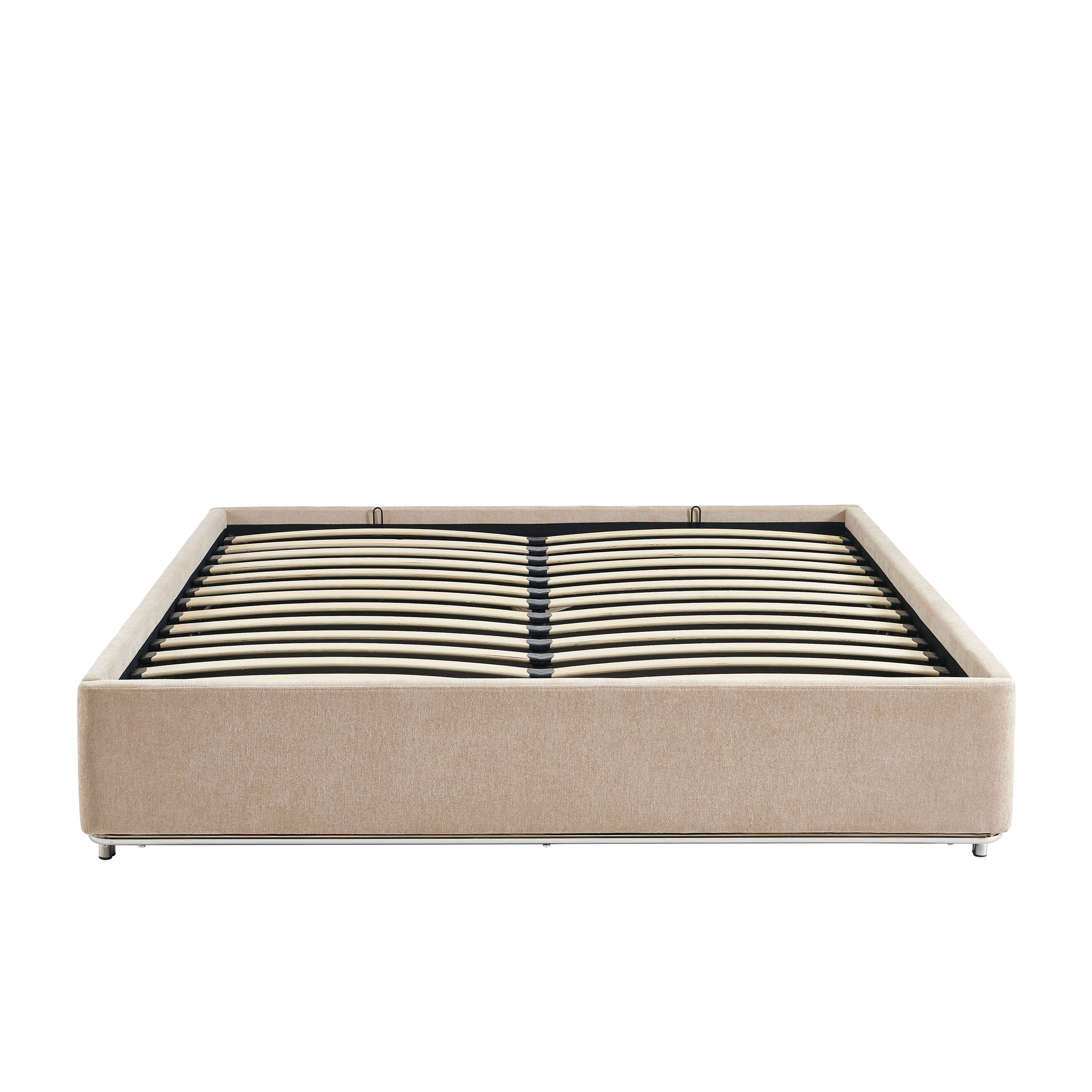 Lit coffre MAGGY 160x200 tissu chenille beige sommier inclus