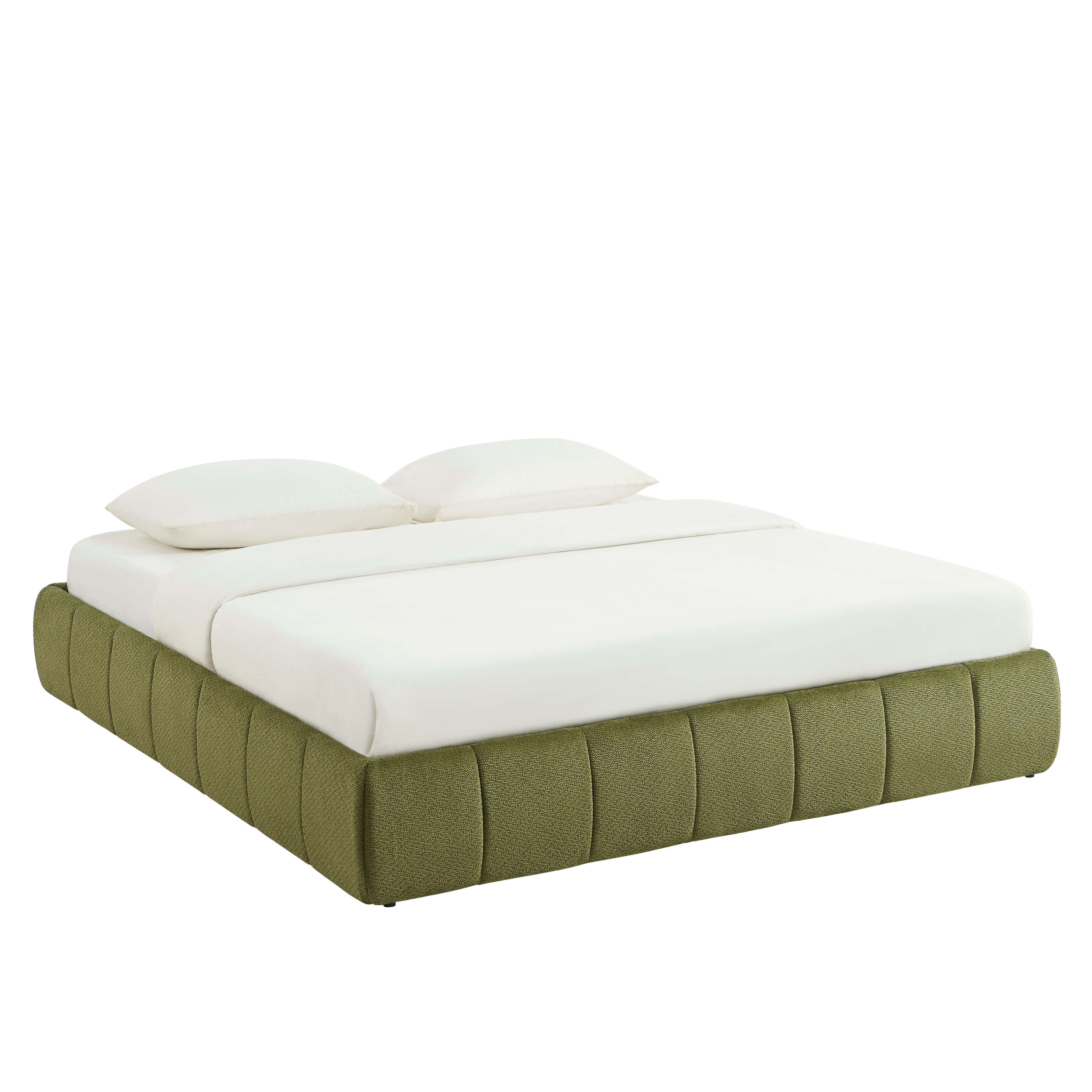 Lit coffre LAVINIA tissu chenille vert 180x200 sommier inclus