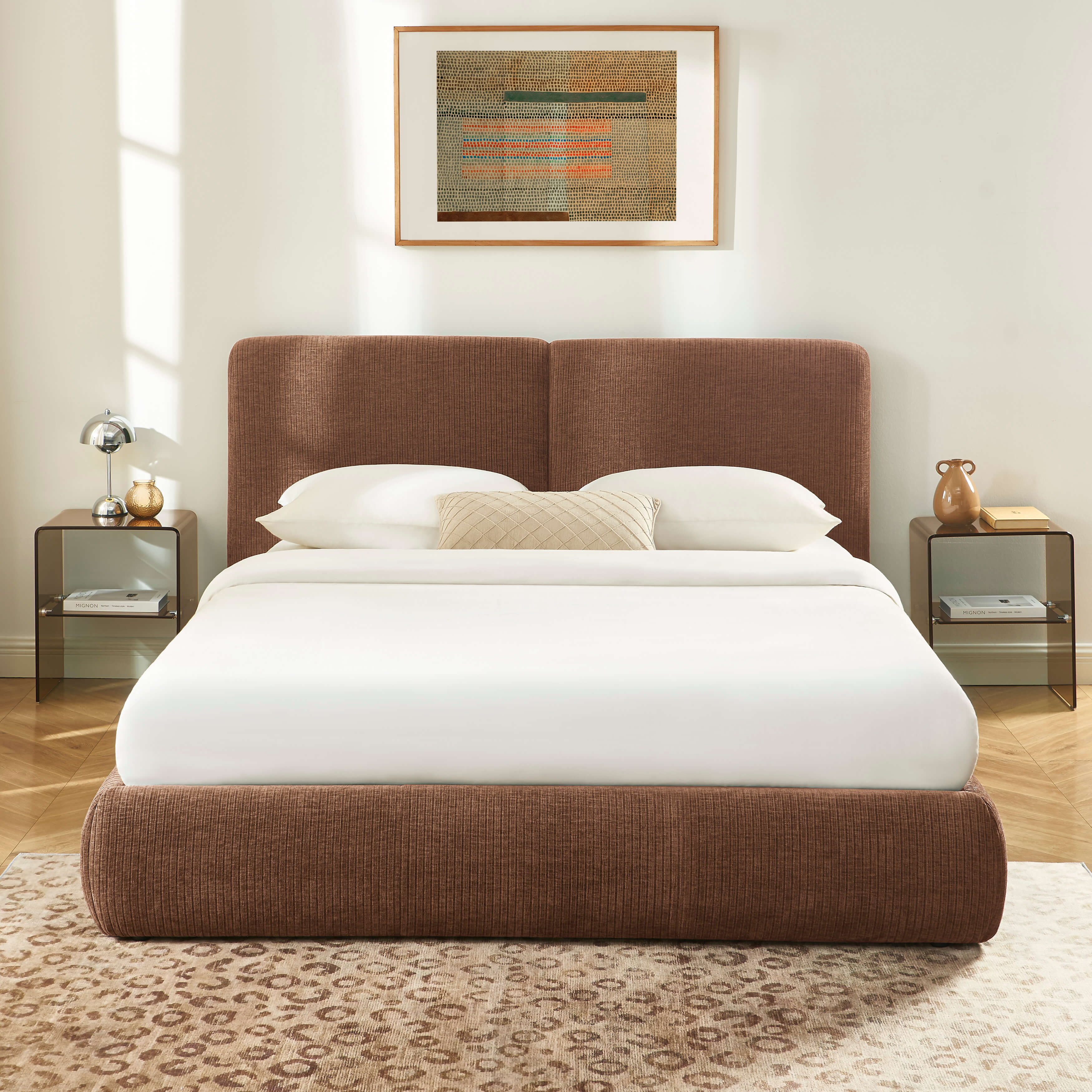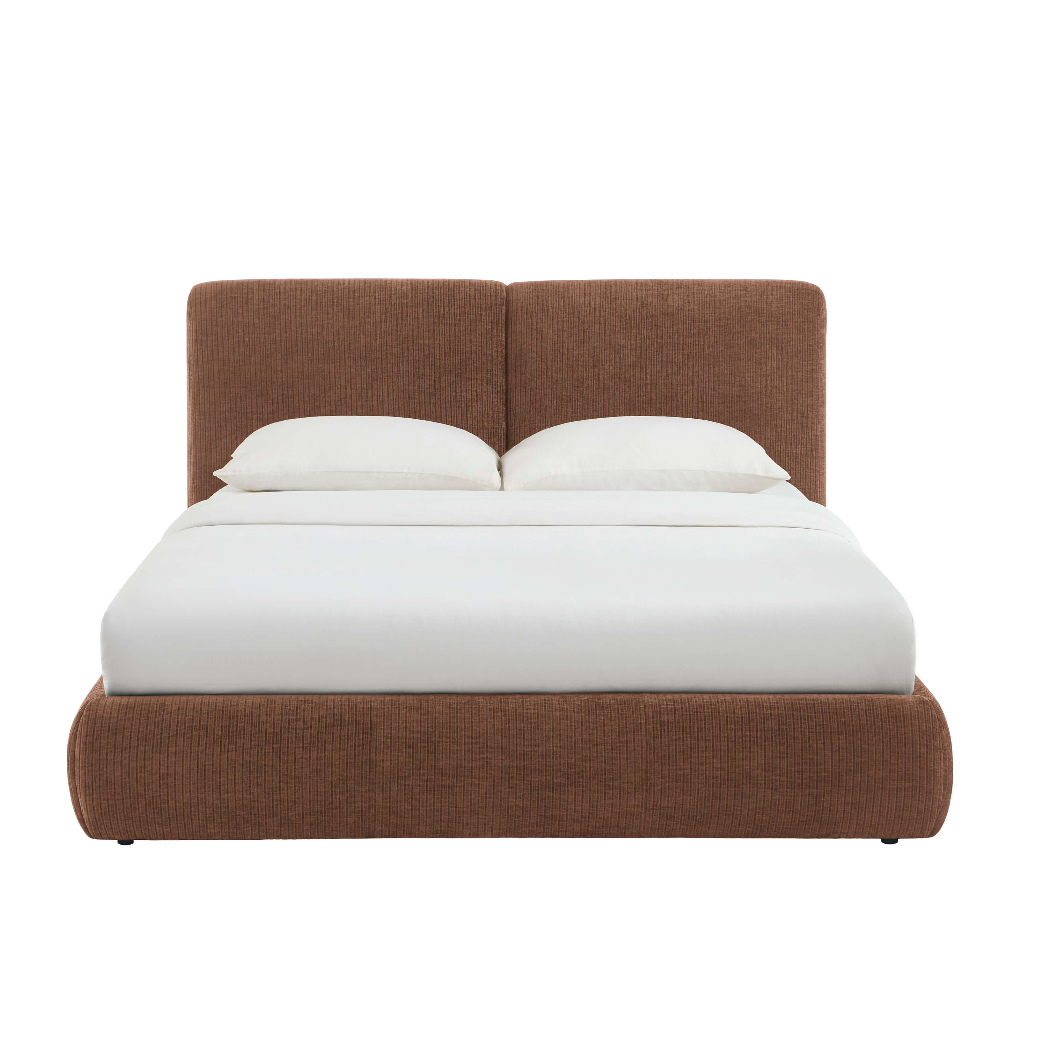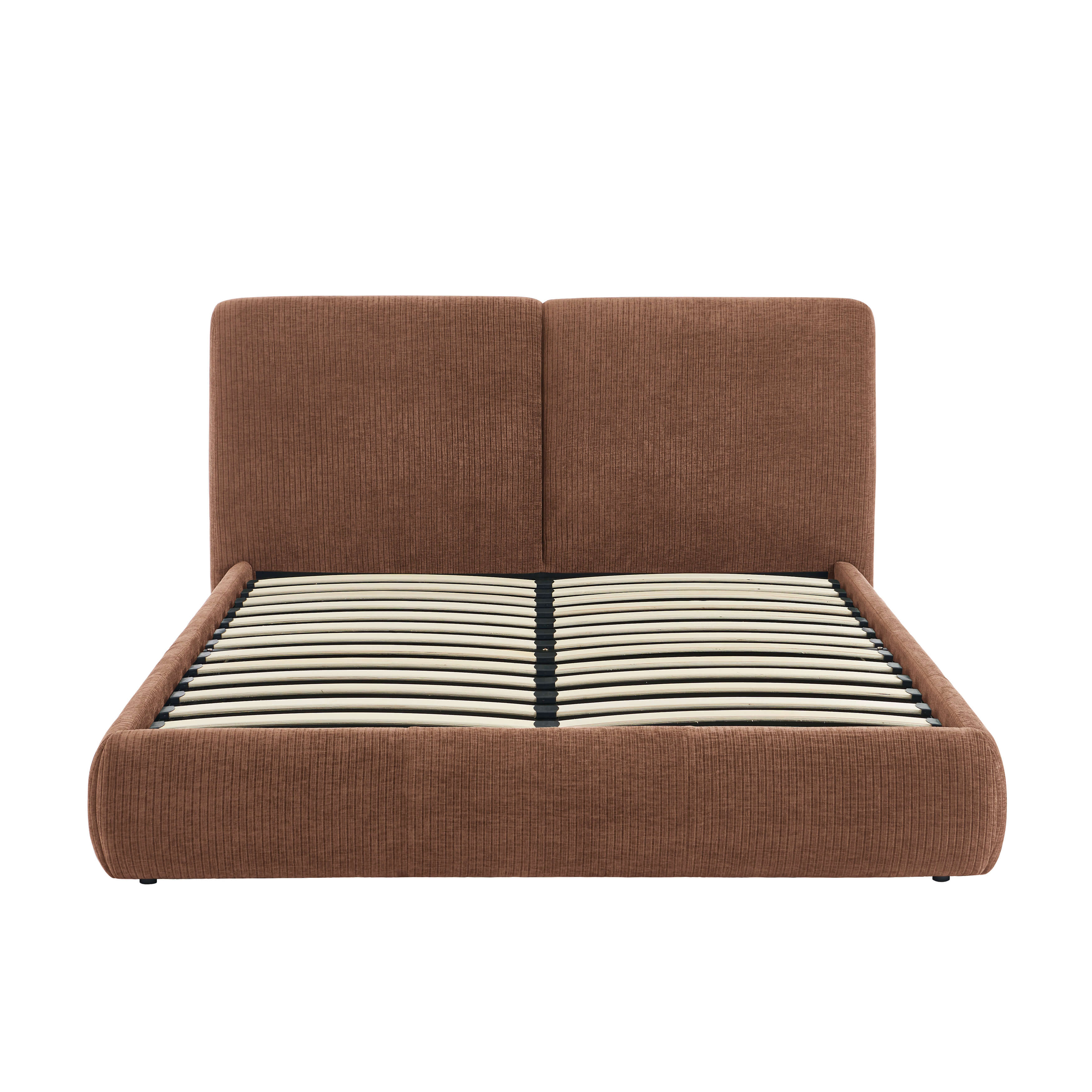 Lit coffre YOKA 160x200 velours côtelé marron sommier inclus