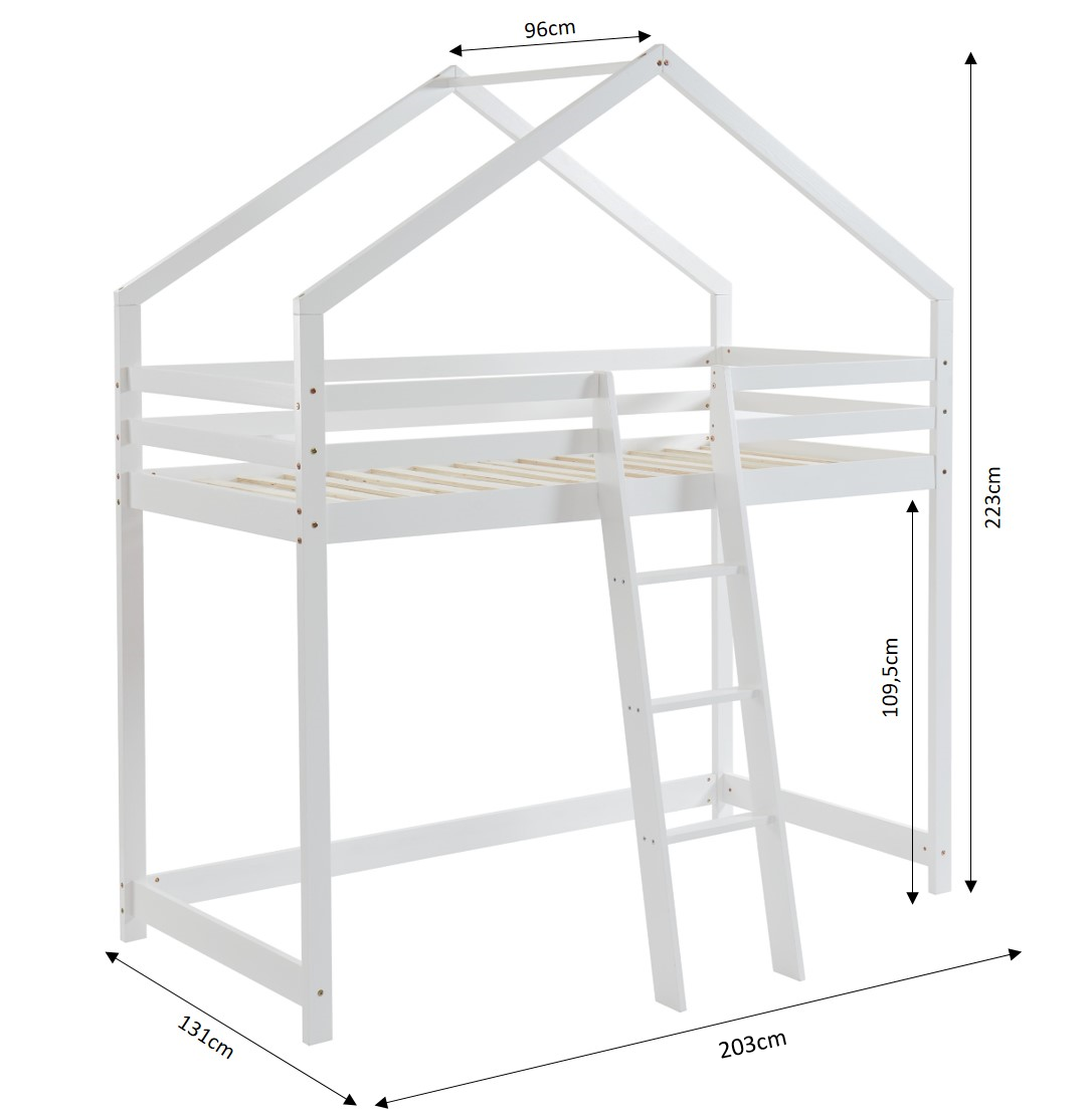 Lit mezzanine TINY 90x190 pin blanc sommier inclus