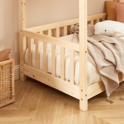 Le lit cabane TINY est équipé d'un sommier à lattes 70x140 cm inclus, assurant un soutien ferme et confortable pour le sommeil de votre enfant. Les 15 lattes en bois flexibles s'adaptent parfaitement à la morphologie de votre enfant, garantissant un sommeil réparateur et revigorant.